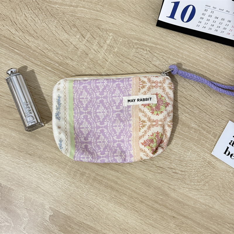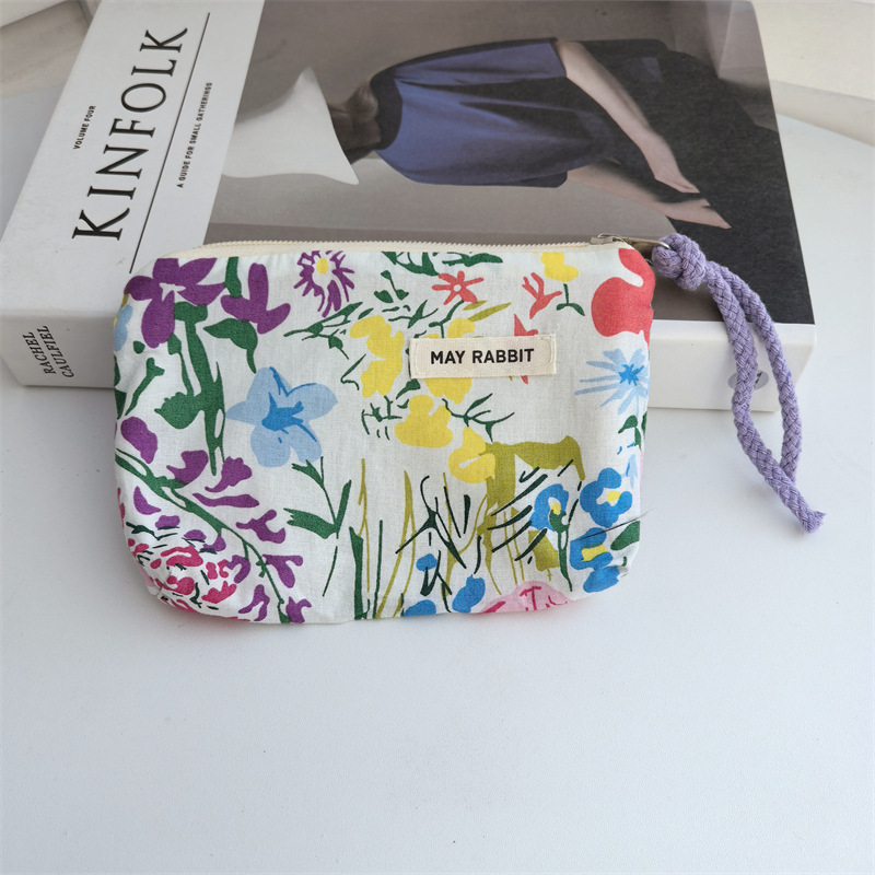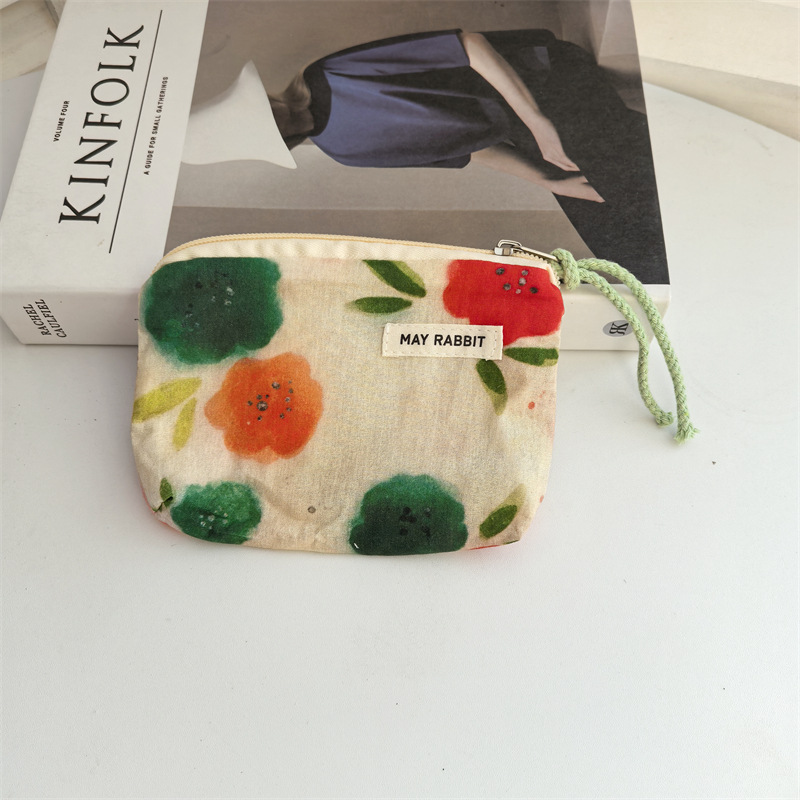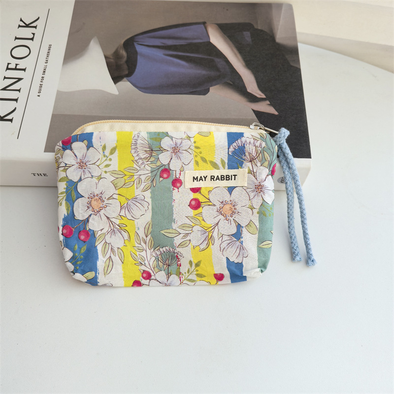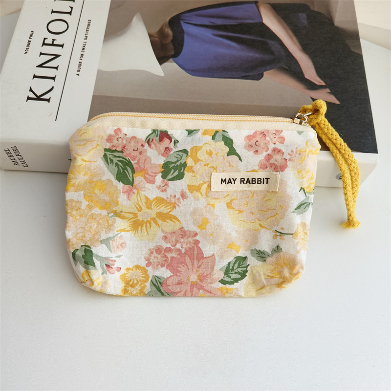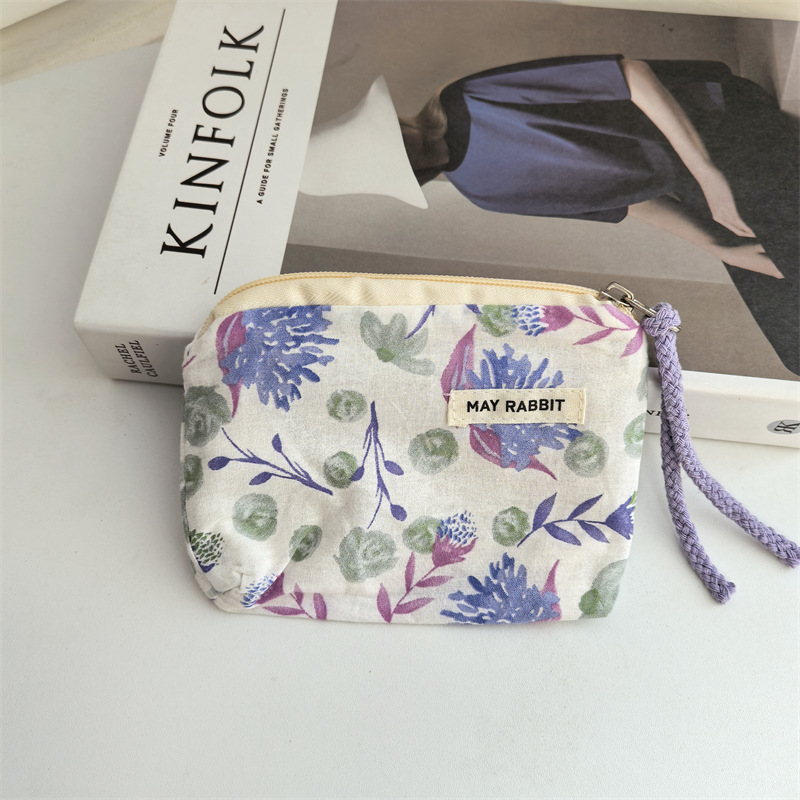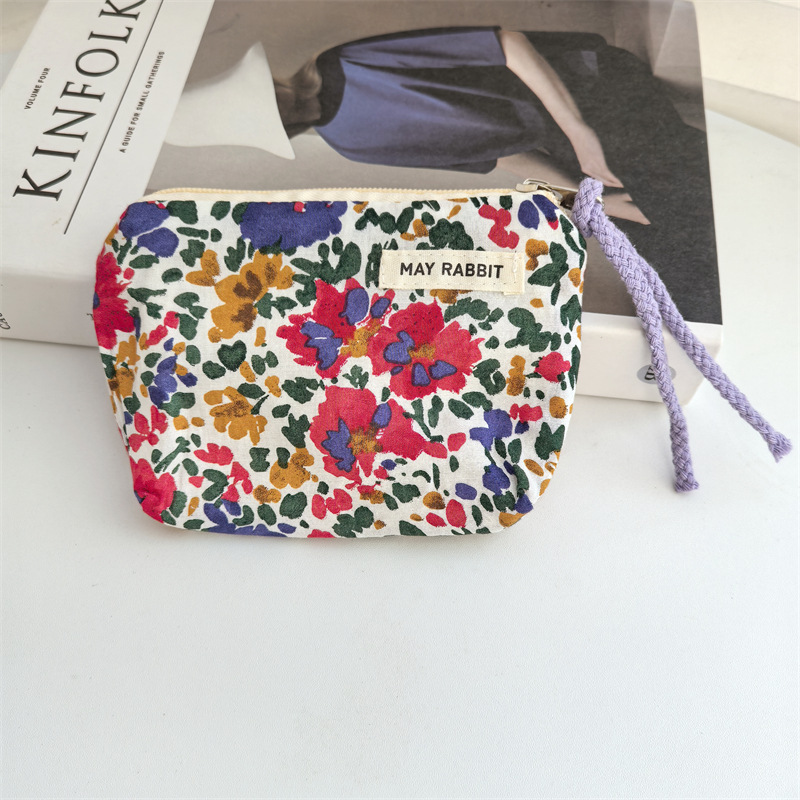 새로운 스타일 작은 신선한 면화 깨진 꽃 테더 동전 지갑 여성용 핸드 헬드 소형 화장품 가방 세탁 및 가글 보관 가방