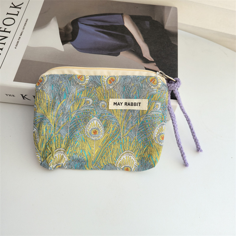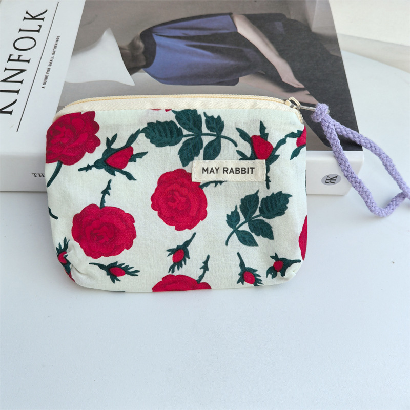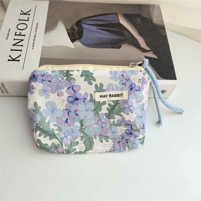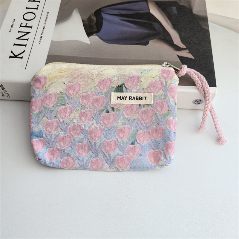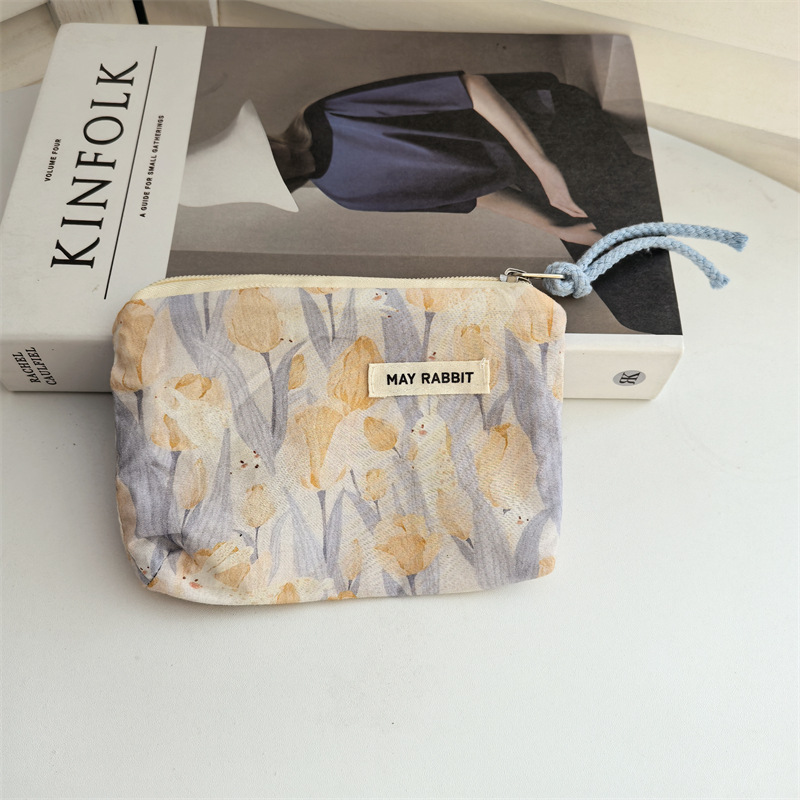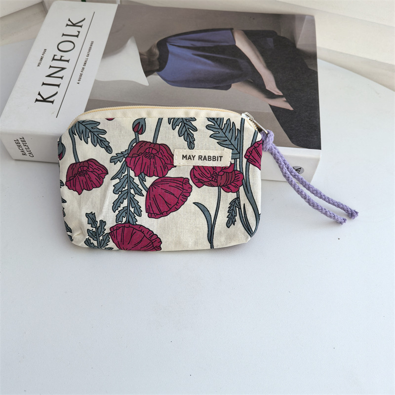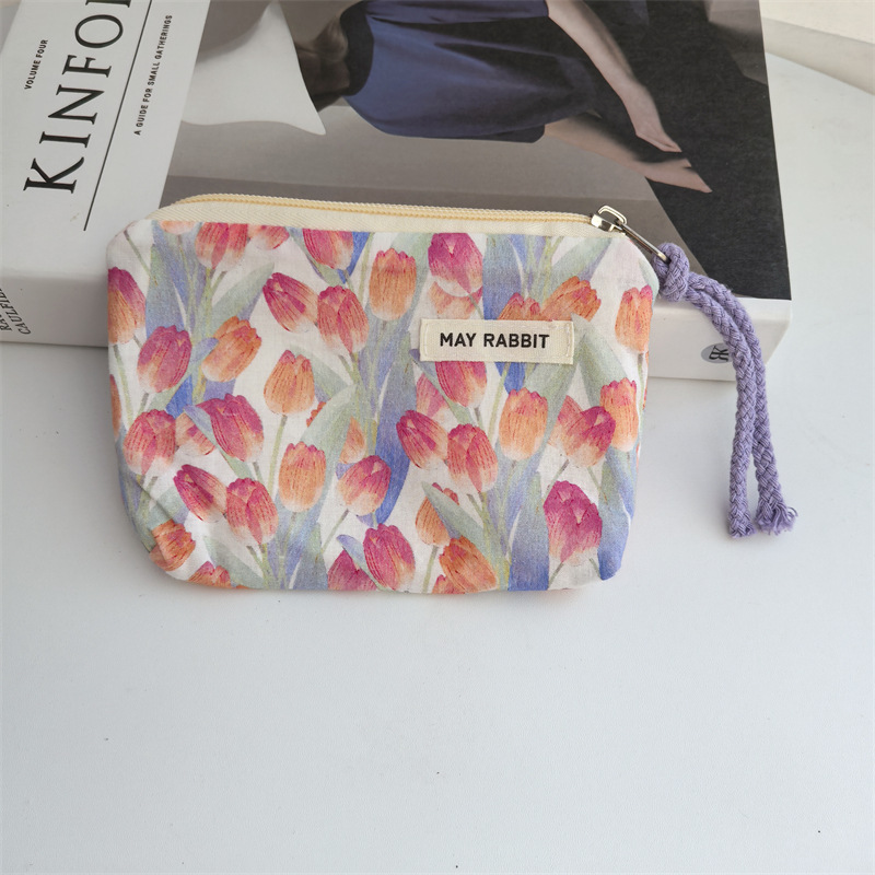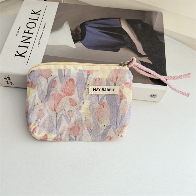 새로운 스타일 작은 신선한 면화 깨진 꽃 테더 동전 지갑 여성용 핸드 헬드 소형 화장품 가방 세탁 및 가글 보관 가방