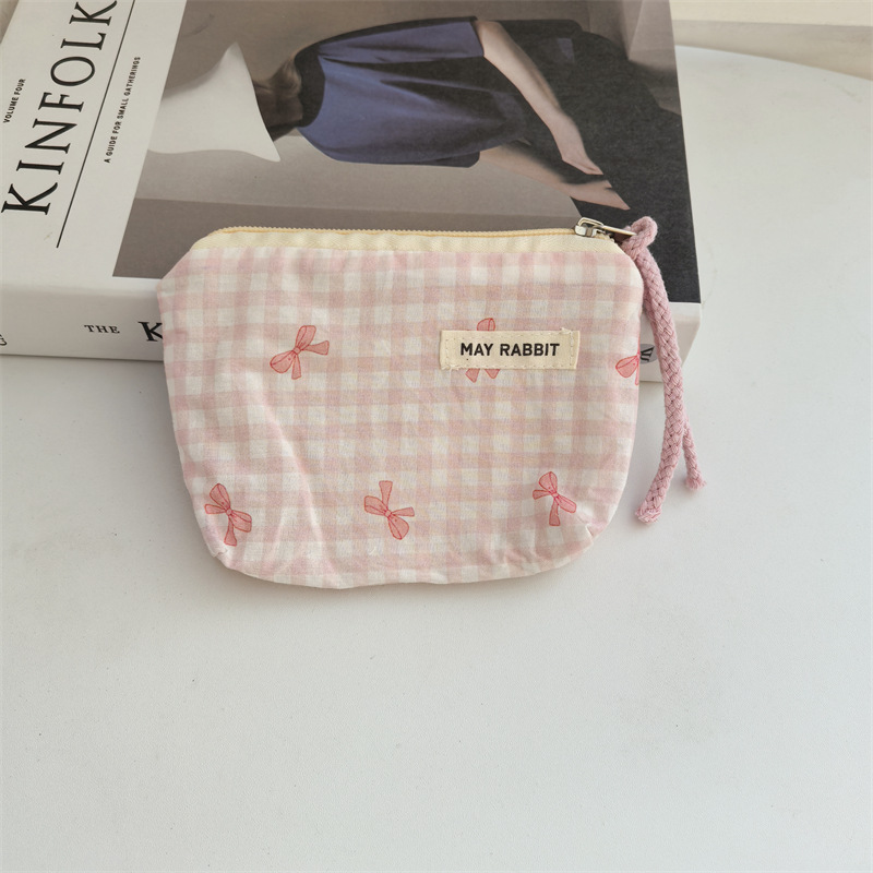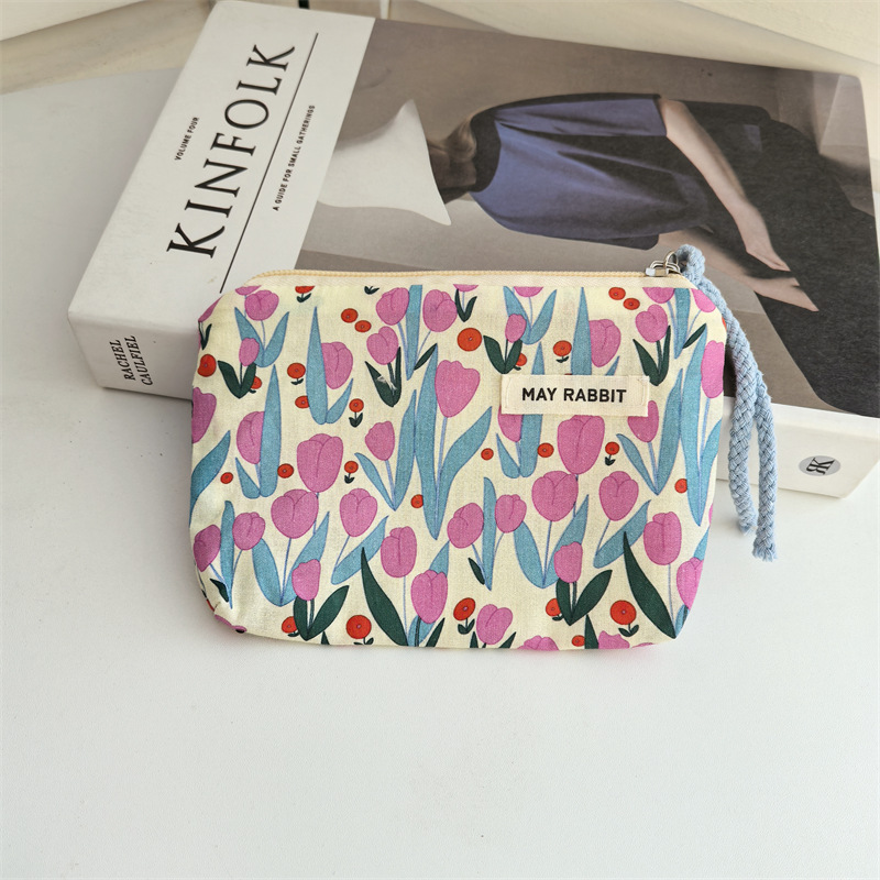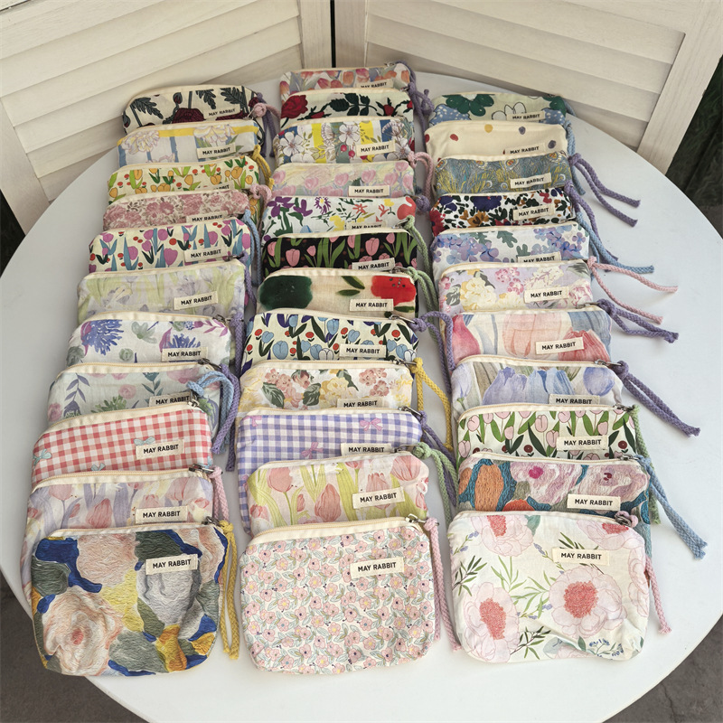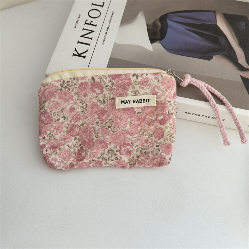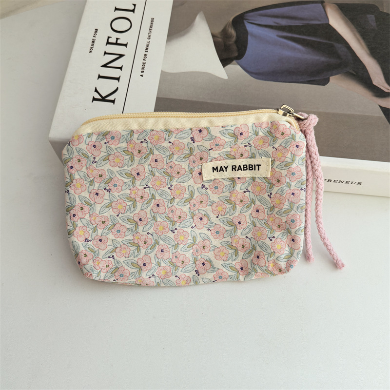 새로운 스타일 작은 신선한 면화 깨진 꽃 테더 동전 지갑 여성용 핸드 헬드 소형 화장품 가방 세탁 및 가글 보관 가방스토어 가기