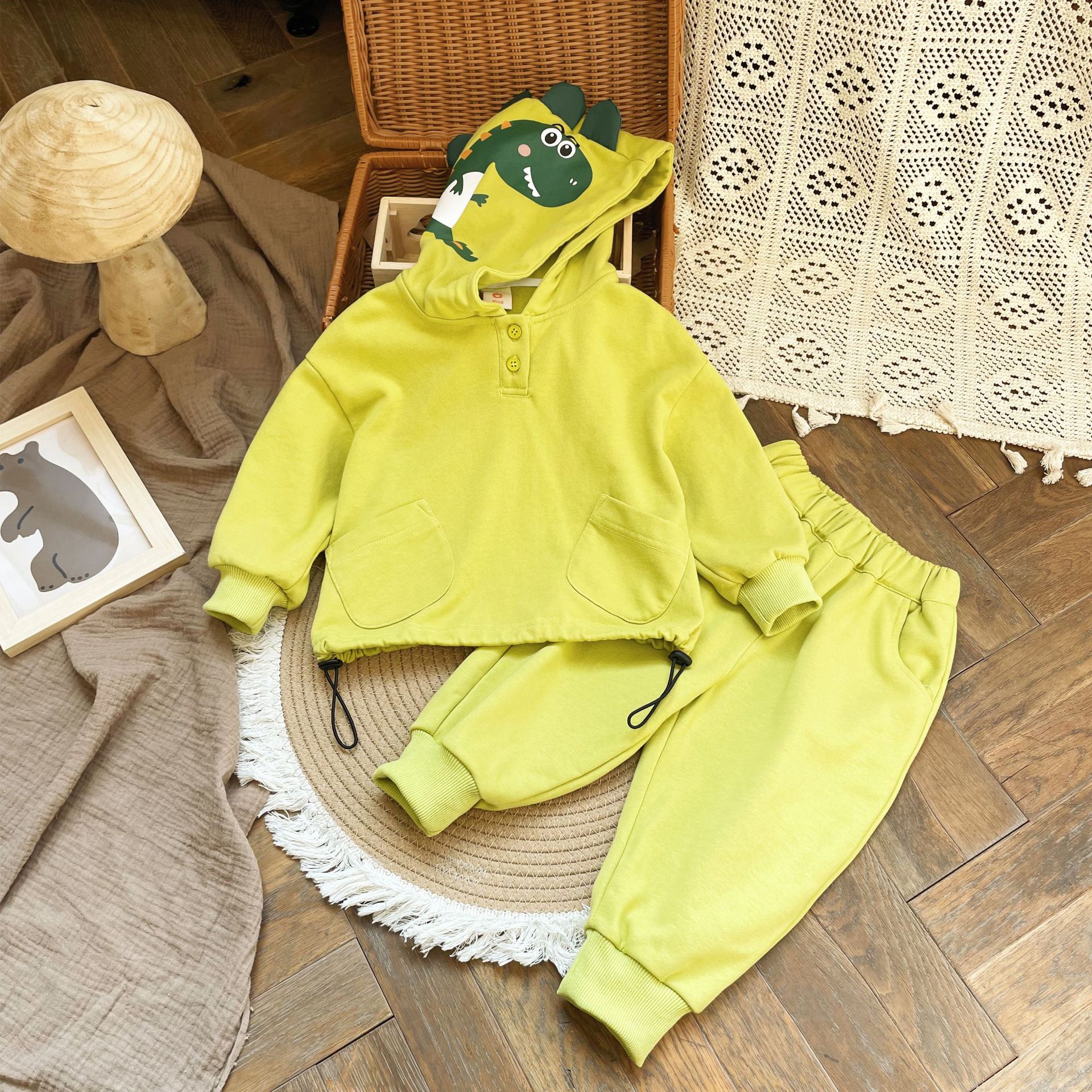 어린이 기모 어린이 세트 2024 가을 겨울 새 아기 겨울 옷 소년 기모 땀 투피스 QT245677스토어 가기