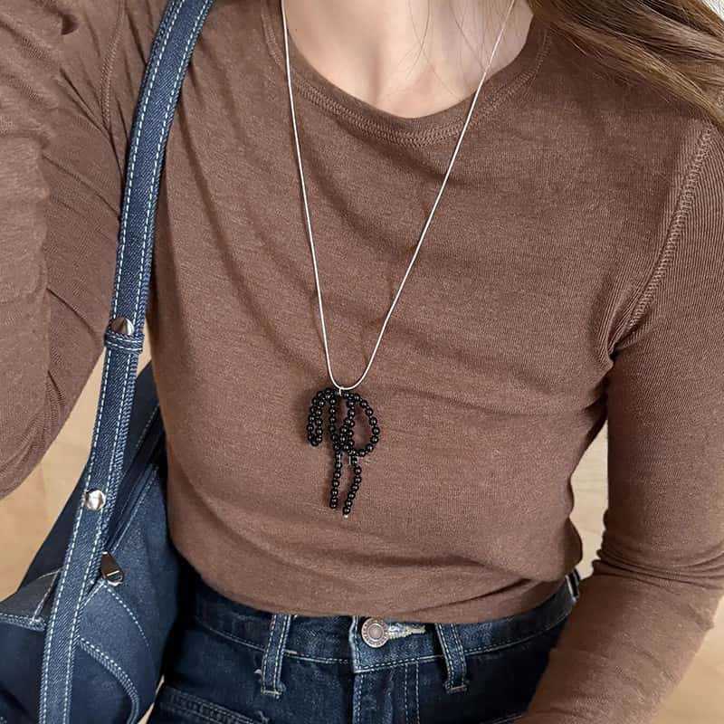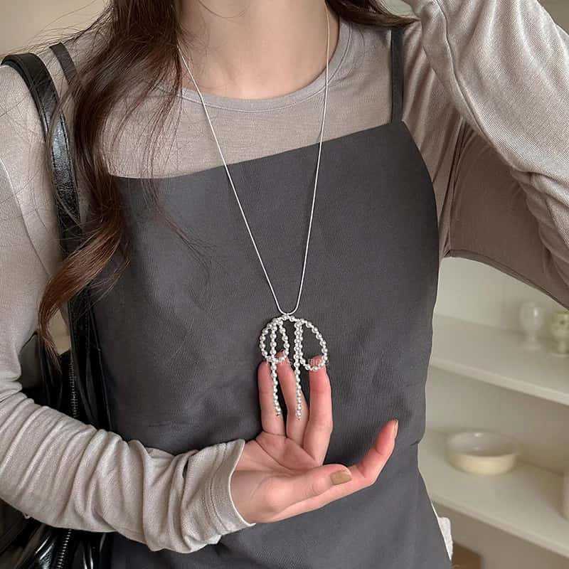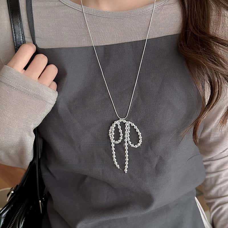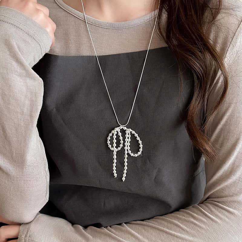 활 진주 펜던트 목걸이 여성의 2024 새로운 패션 액세서리 가을과 겨울 우아한 사이버 연예인 하이 엔드 센스 모직 체인스토어 가기