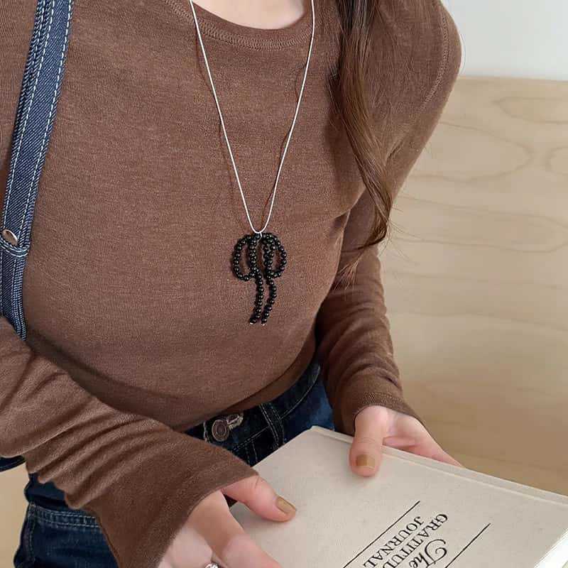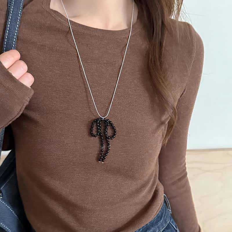 활 진주 펜던트 목걸이 여성의 2024 새로운 패션 액세서리 가을과 겨울 우아한 사이버 연예인 하이 엔드 센스 모직 체인