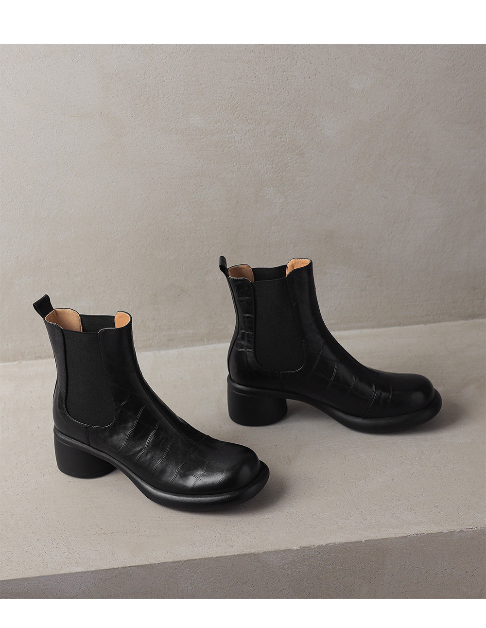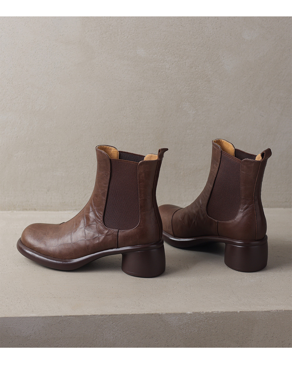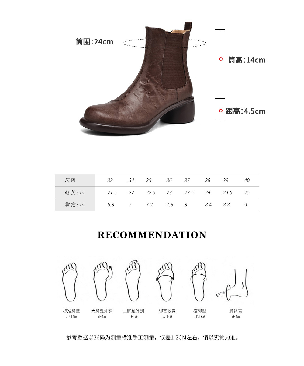 서양식 짧은 부츠 여성 봄과 가을 싱글 부츠 둥근 머리 중간 뒤꿈치 두꺼운 뒤꿈치 가죽 두꺼운 바닥 탄성 밴드 33 사이즈 40 첼시 부츠스토어 가기