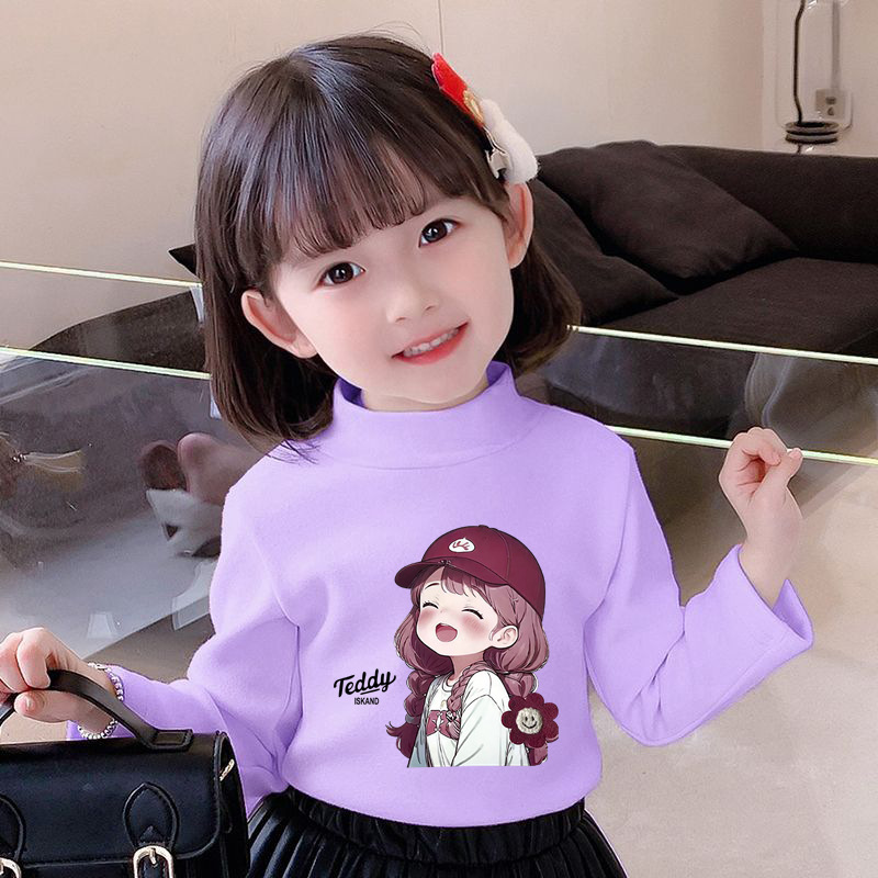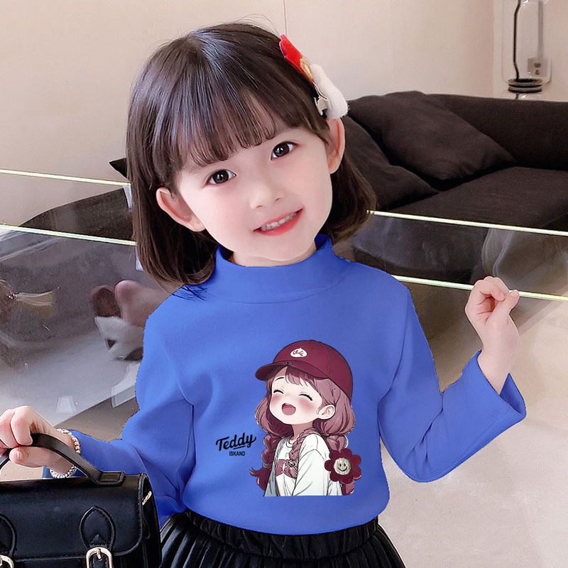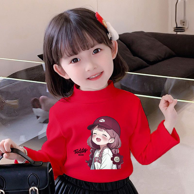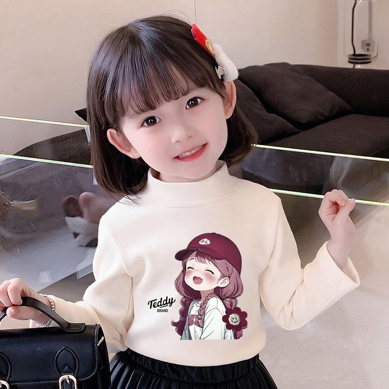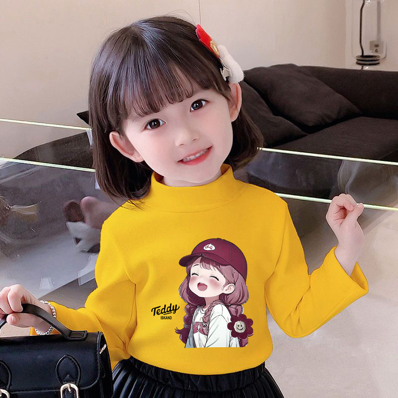 Y2346 # 여자 드 벨벳 캐주얼 긴 소매 티셔츠 가을 새로운 큰 어린이 의류 만화 인쇄 외국 스타일 소녀 트렌디 t스토어 가기