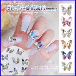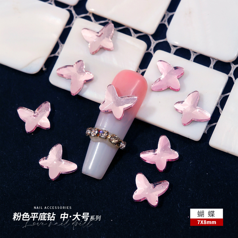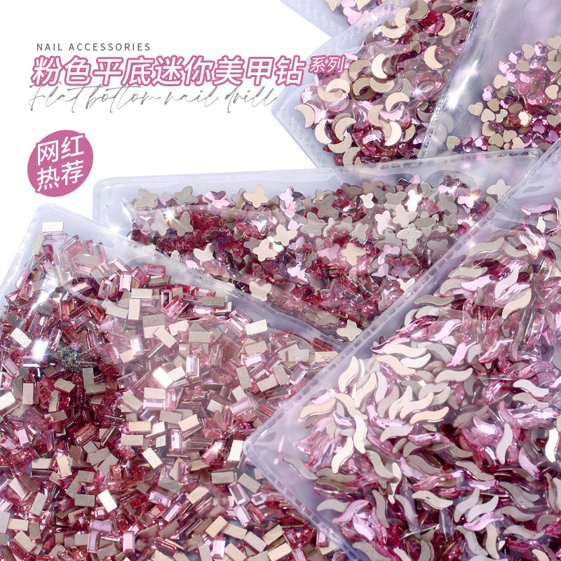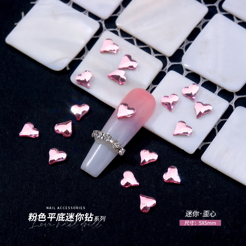 네일아트용 미니 플랫바닥 특수형 큐빅 핑크 하트 나비 네일 K9 유리 장식 크리스탈