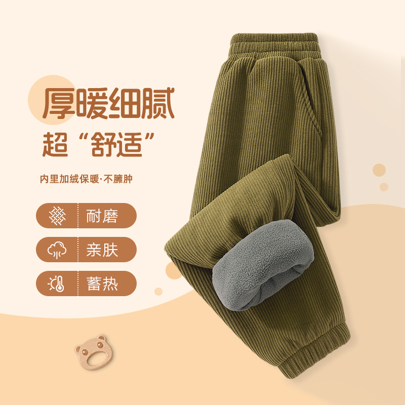 어린이 유럽면 양털 운동복 빅 보이 양면 양털 두꺼운 스포츠 바지 겨울 새 소년 코듀로이 바지스토어 가기
