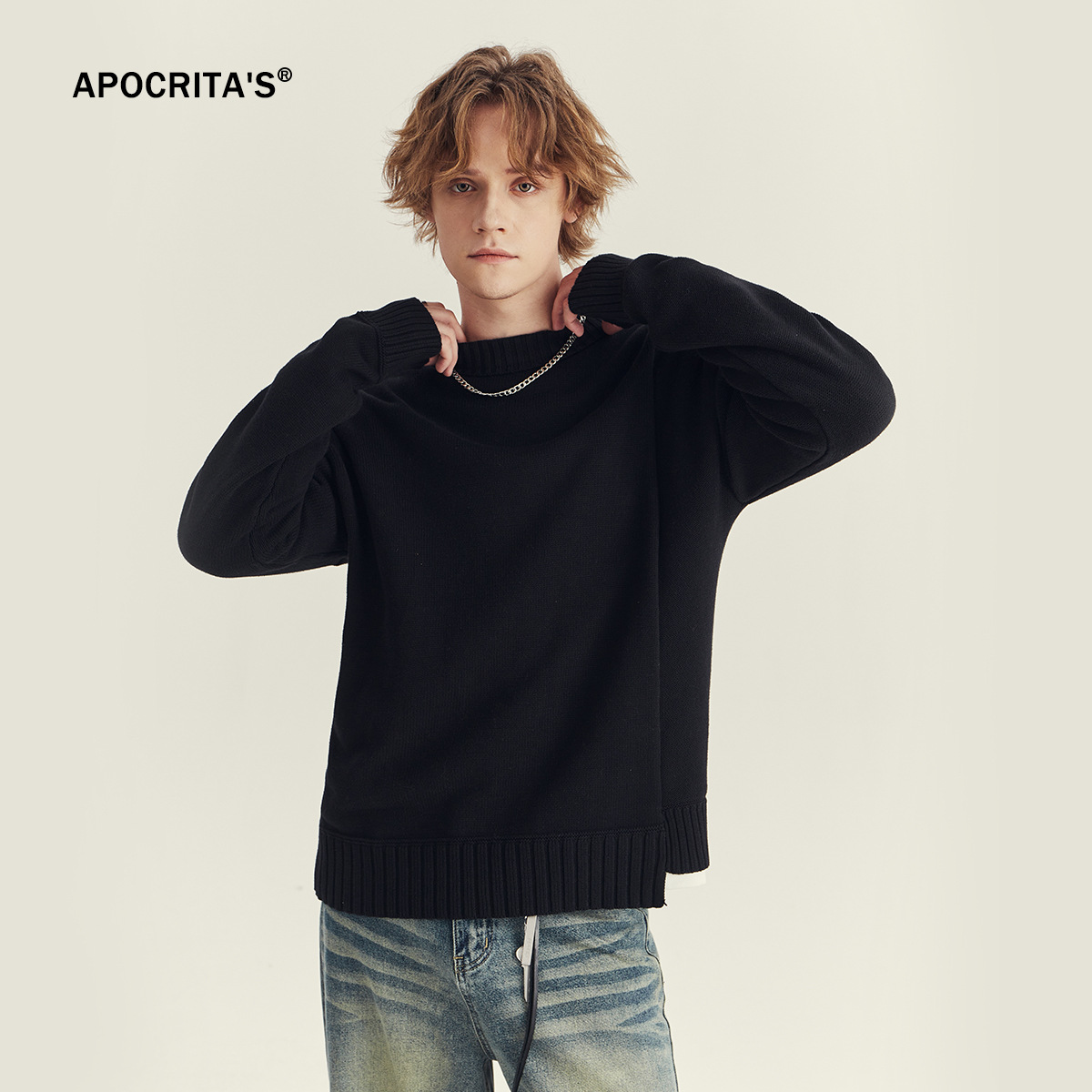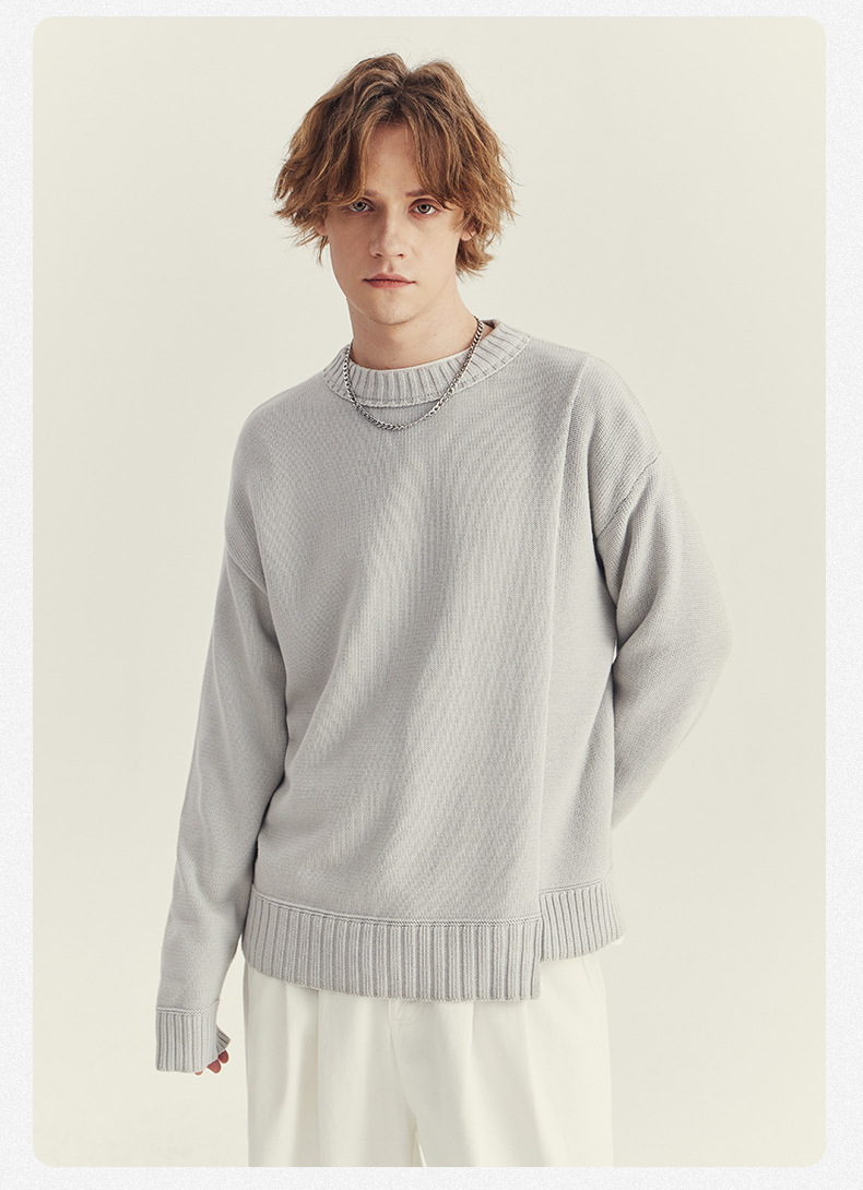 APO 남성복 | 가을과 겨울 크루 넥 스웨터 남성 패션 한국 스타일 접합 느슨한 풀오버 니트 셔츠 긴 소매