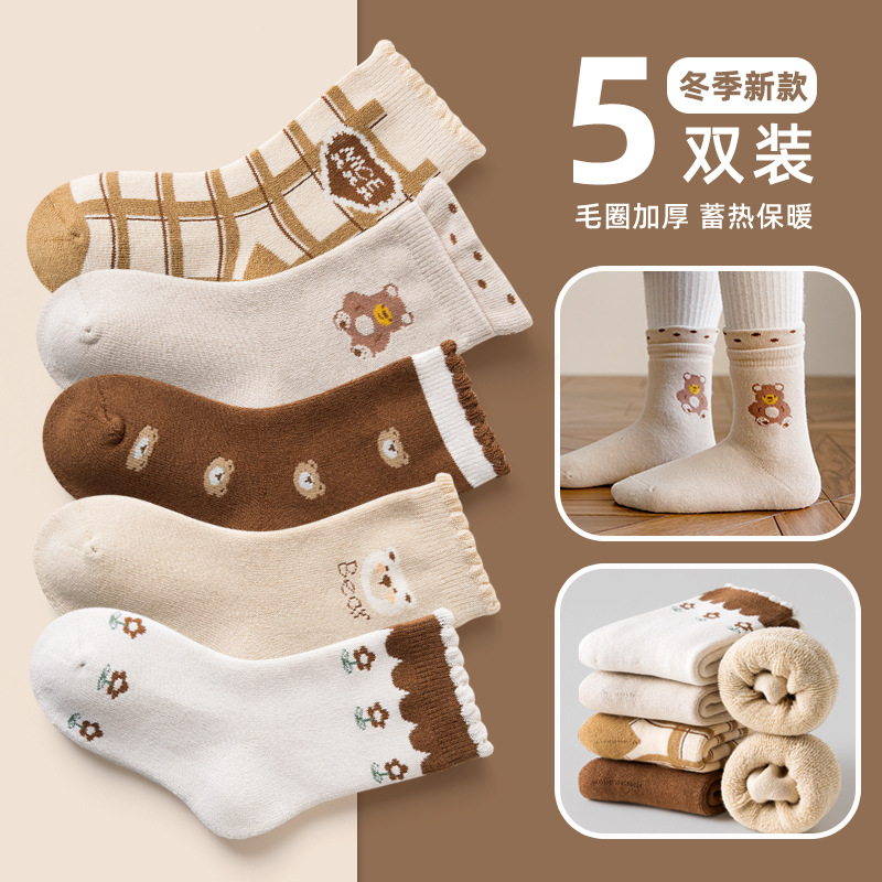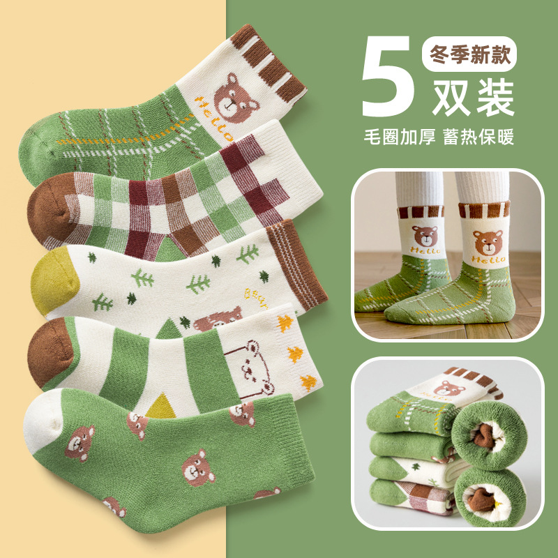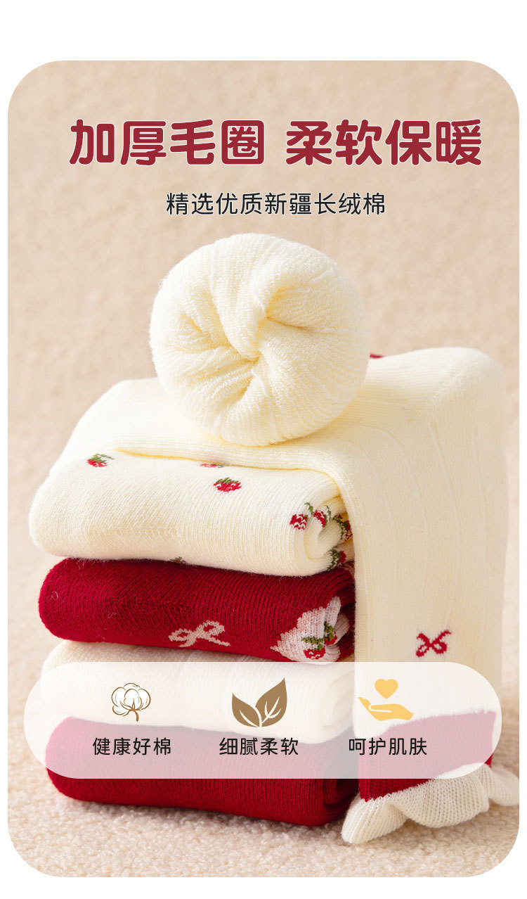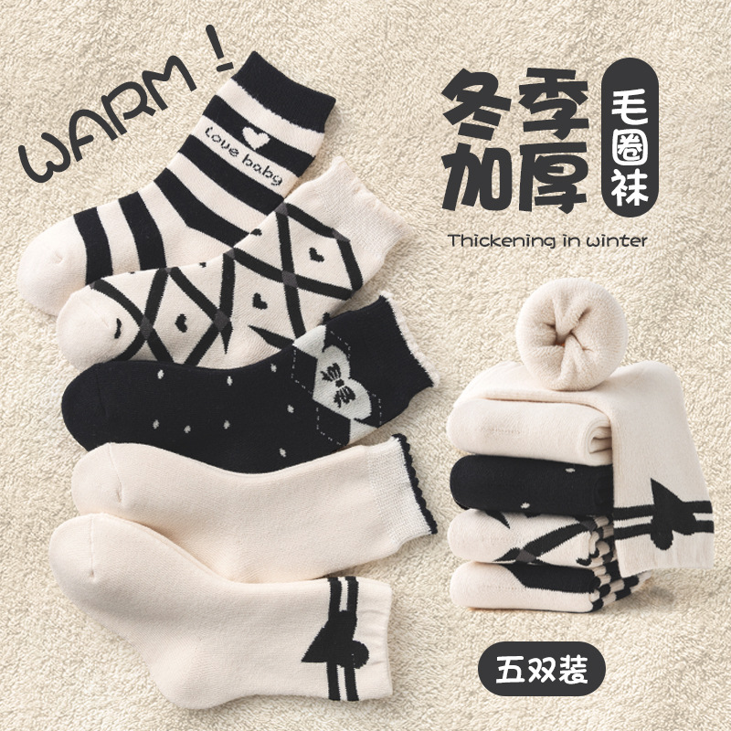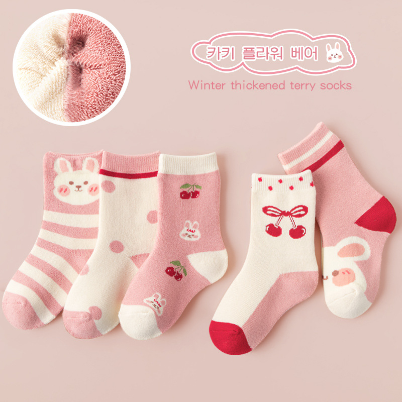 겨울 어린이 양말을 두껍게 따뜻한 붉은 테리 양말 중간 튜브 양말 소년 소녀 면화 양말 도매 아기 양말스토어 가기