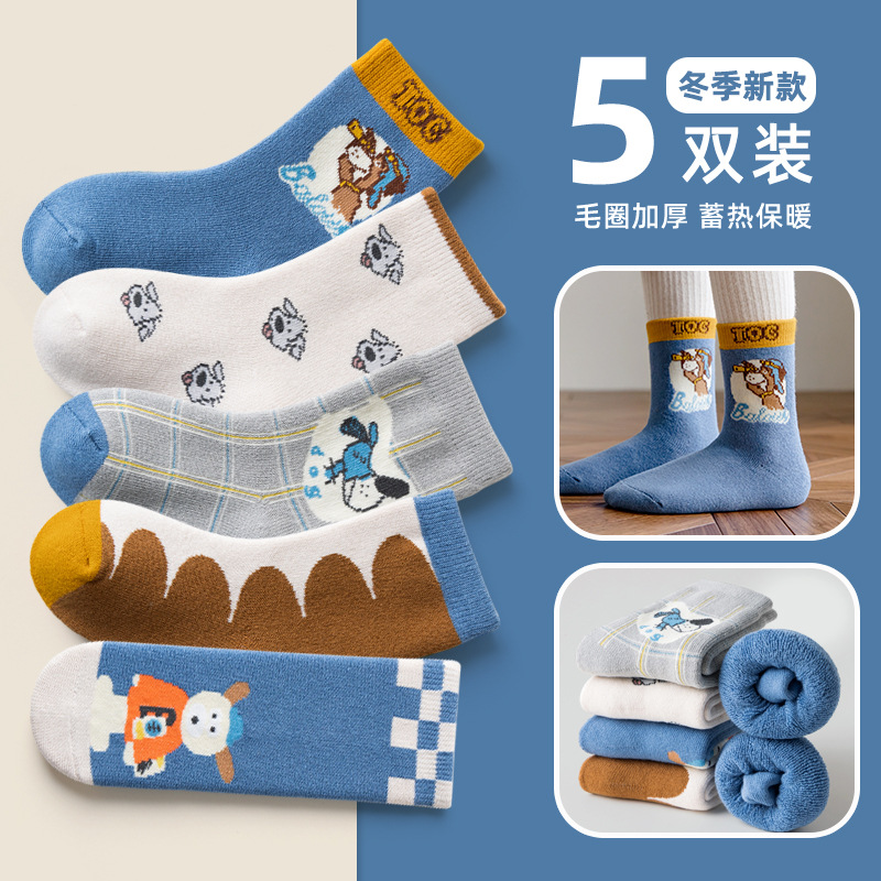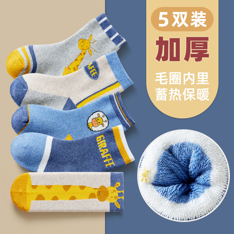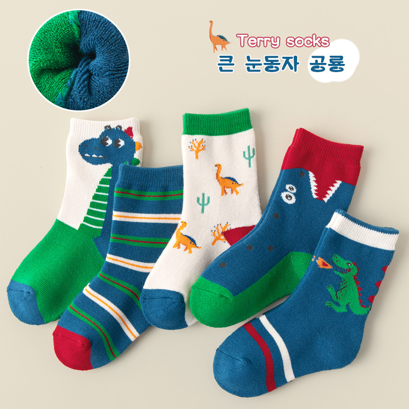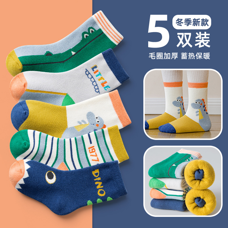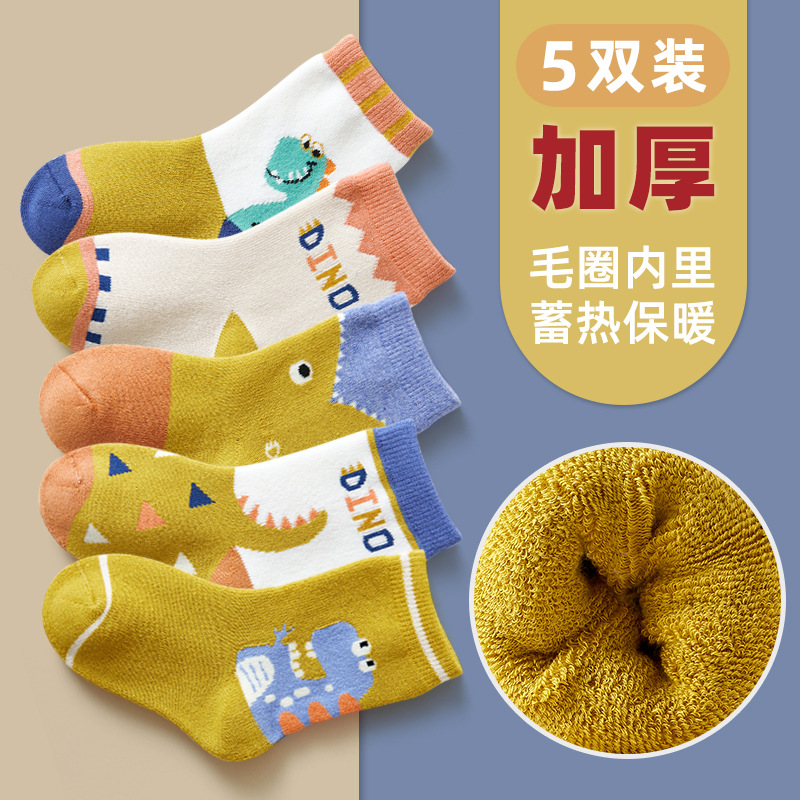 겨울 어린이 양말을 두껍게 따뜻한 붉은 테리 양말 중간 튜브 양말 소년 소녀 면화 양말 도매 아기 양말스토어 가기