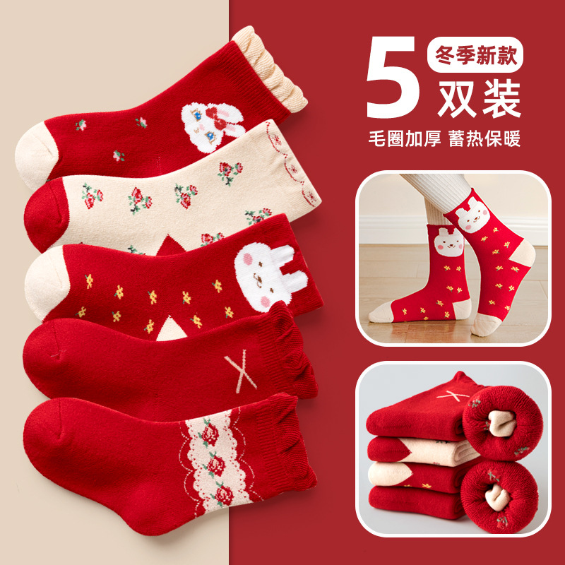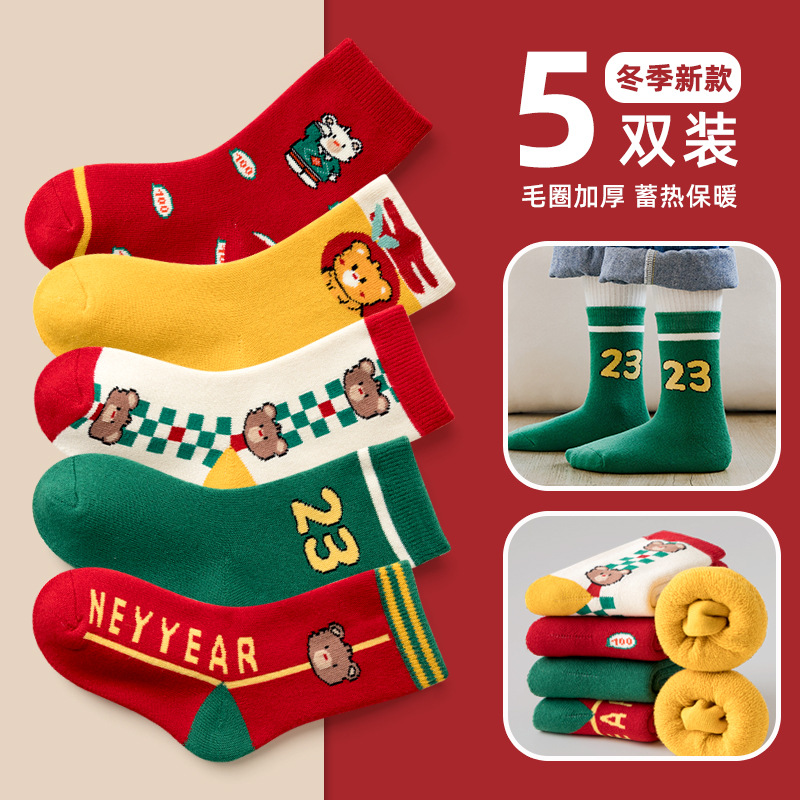 겨울 어린이 양말을 두껍게 따뜻한 붉은 테리 양말 중간 튜브 양말 소년 소녀 면화 양말 도매 아기 양말