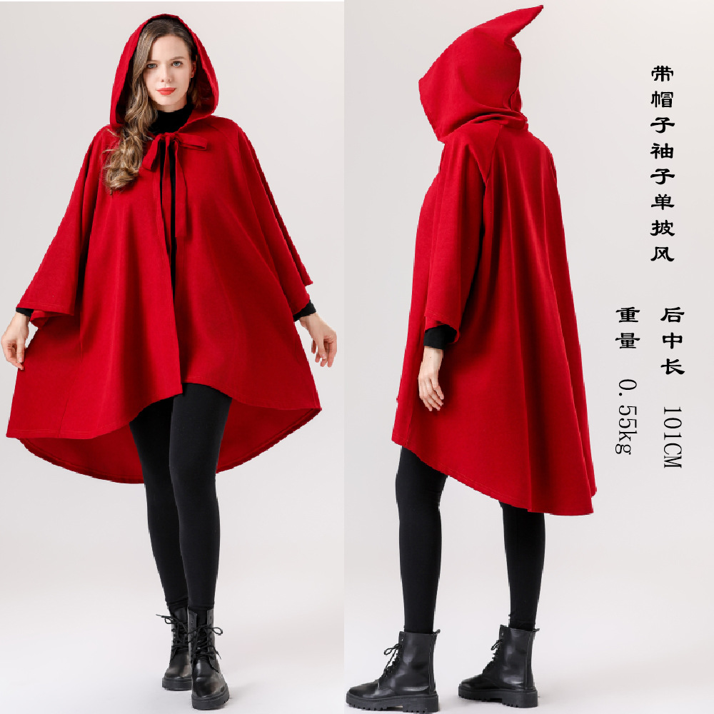 새로운 할로윈 코스프레 성인 소매 빨간색과 검은 망토 작은 빨간 승마 후드 목도리 판초 여자 죽음의 마법사