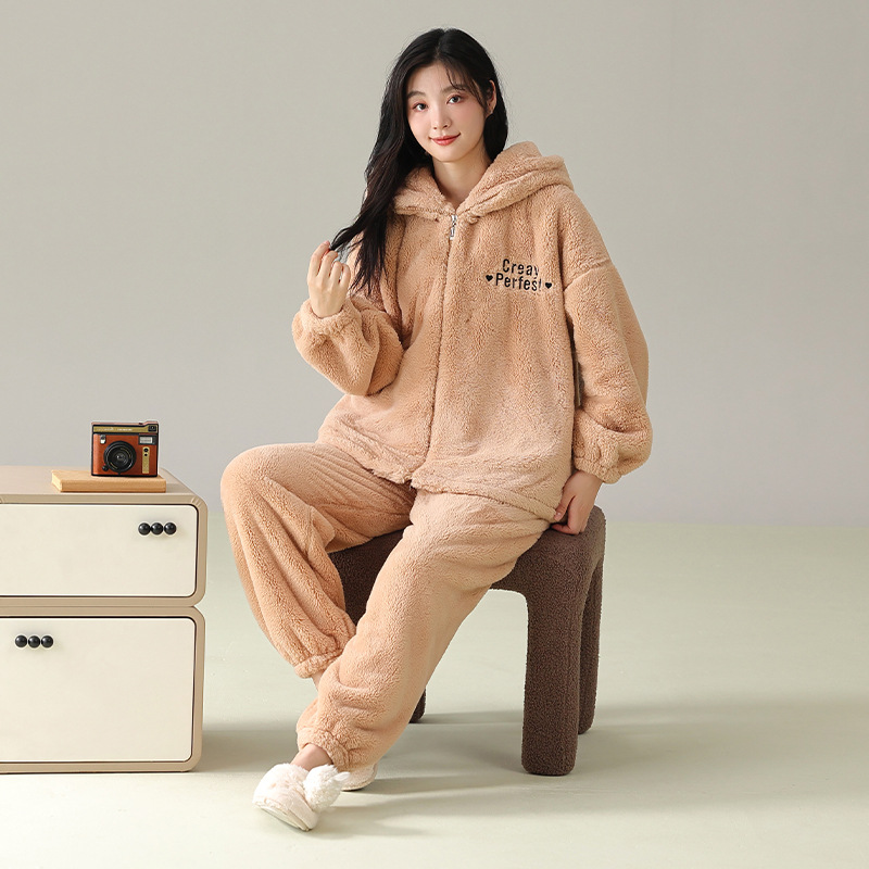 겨울 커플 잠옷 여성의 겨울 기모 두꺼운 산호 양털 후드 홈 의류 지퍼 카디건 남성 의류 세트스토어 가기