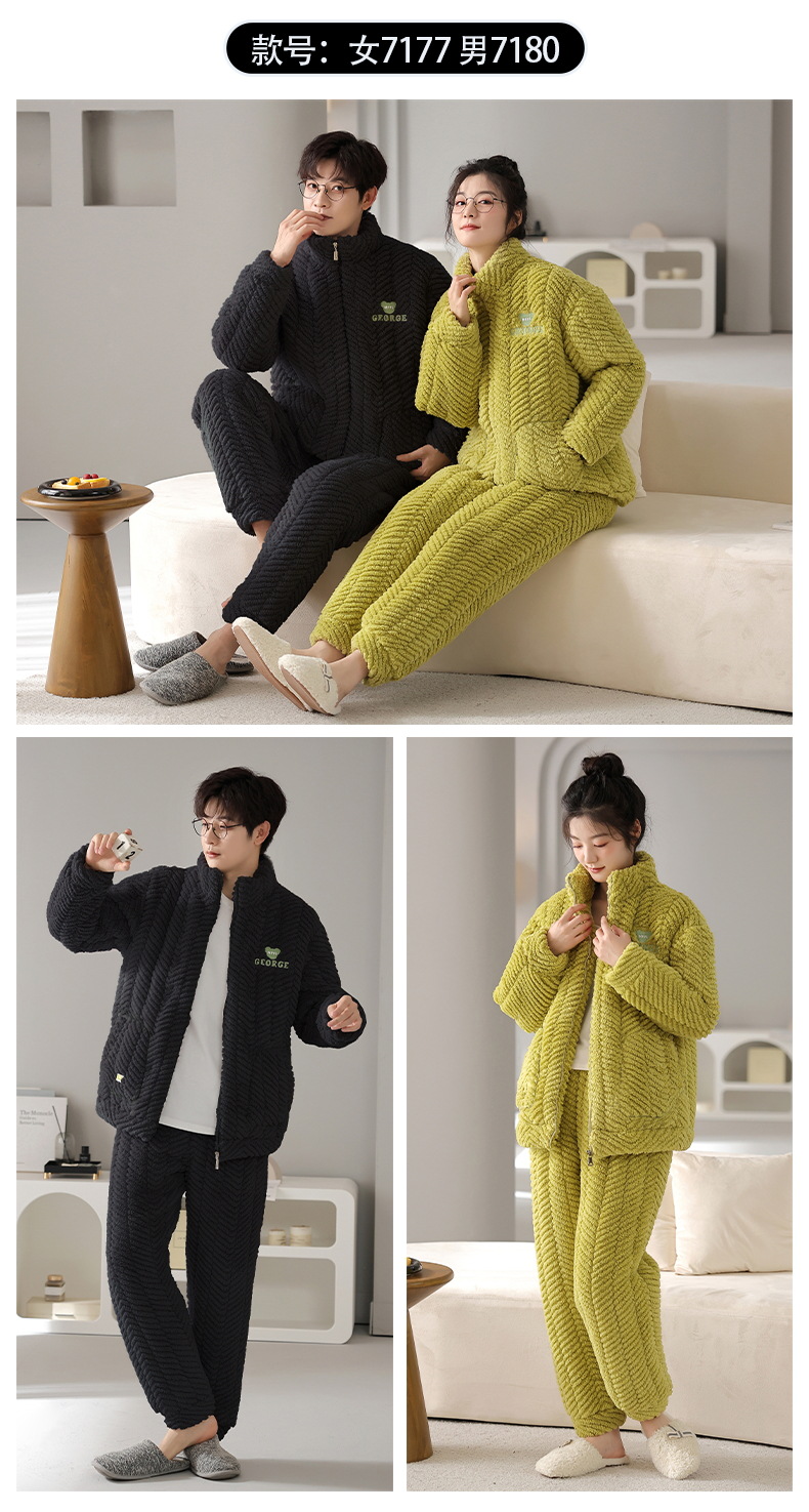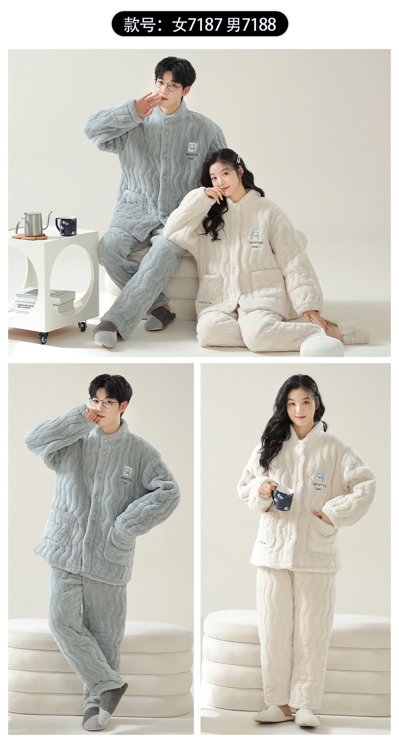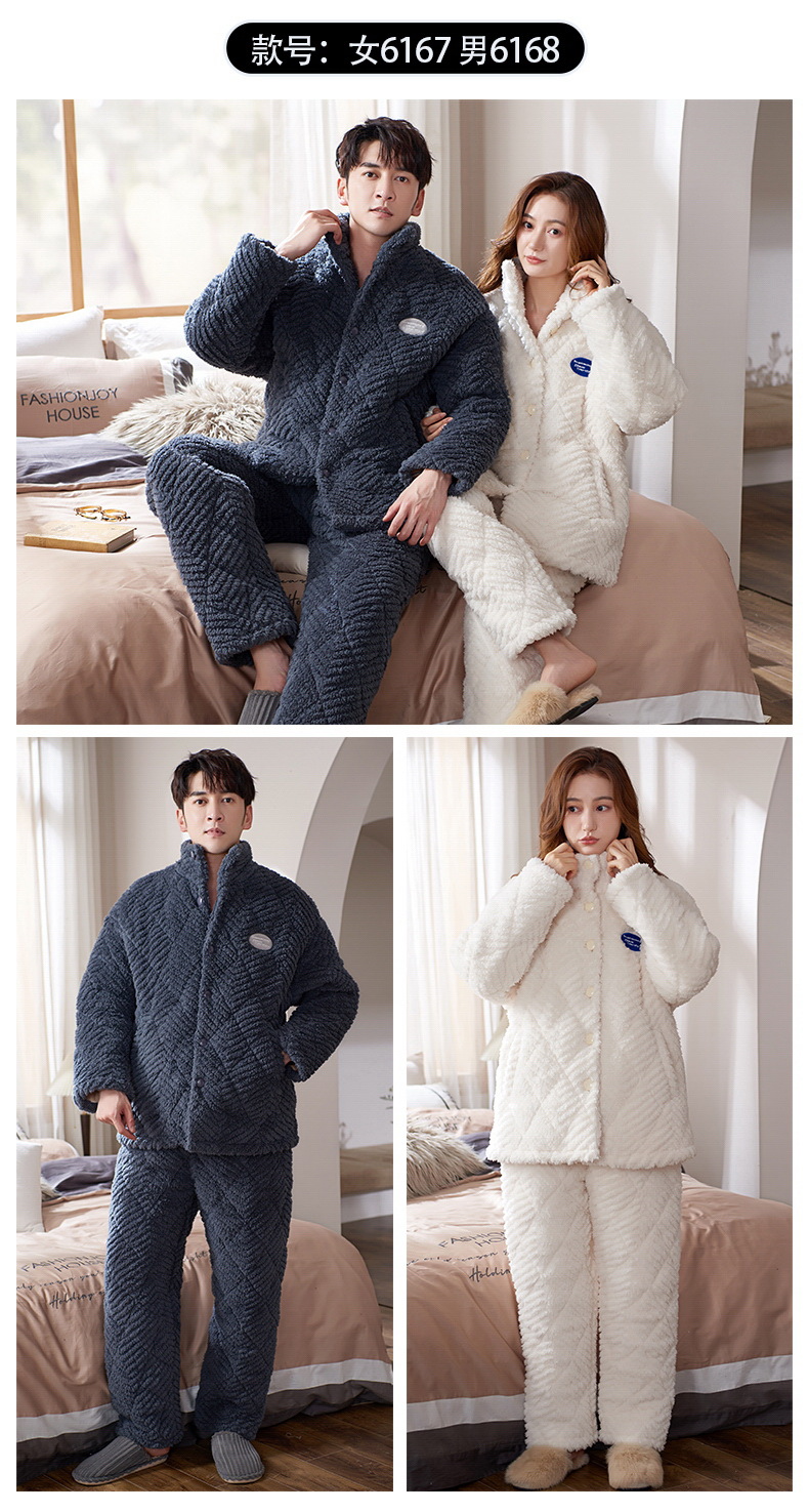 플란넬 파자마 여성의 겨울 3 층 라인드 벨벳 간단한 커플 세트 옷깃 따뜻한 남성 벨벳 홈 옷스토어 가기