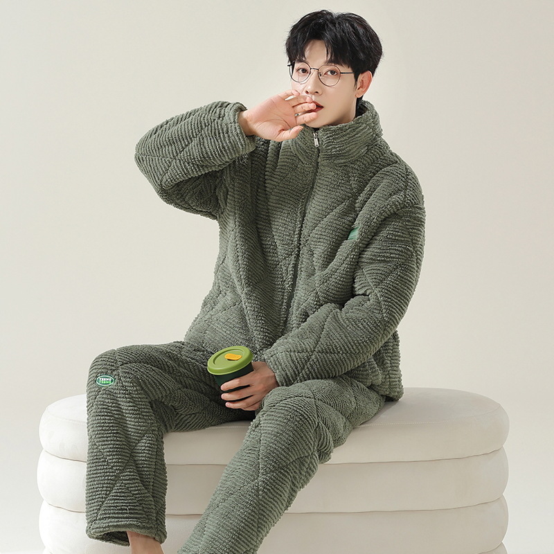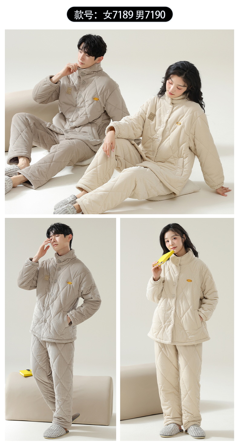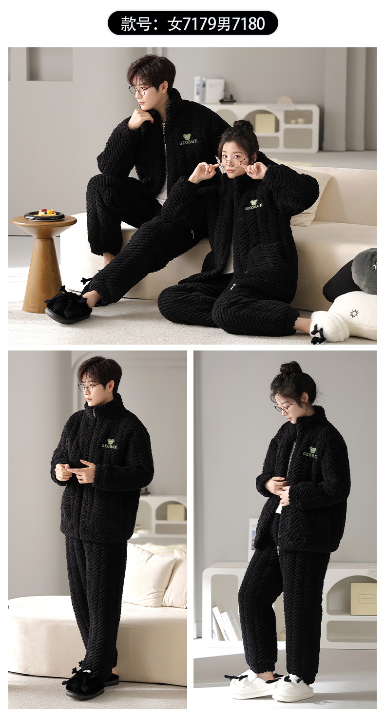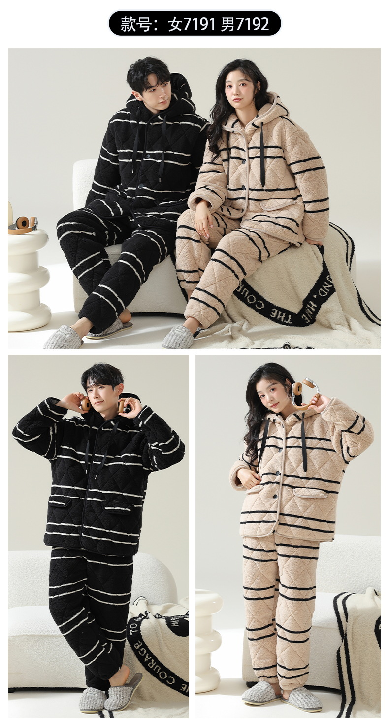 플란넬 파자마 여성의 겨울 3 층 라인드 벨벳 간단한 커플 세트 옷깃 따뜻한 남성 벨벳 홈 옷스토어 가기