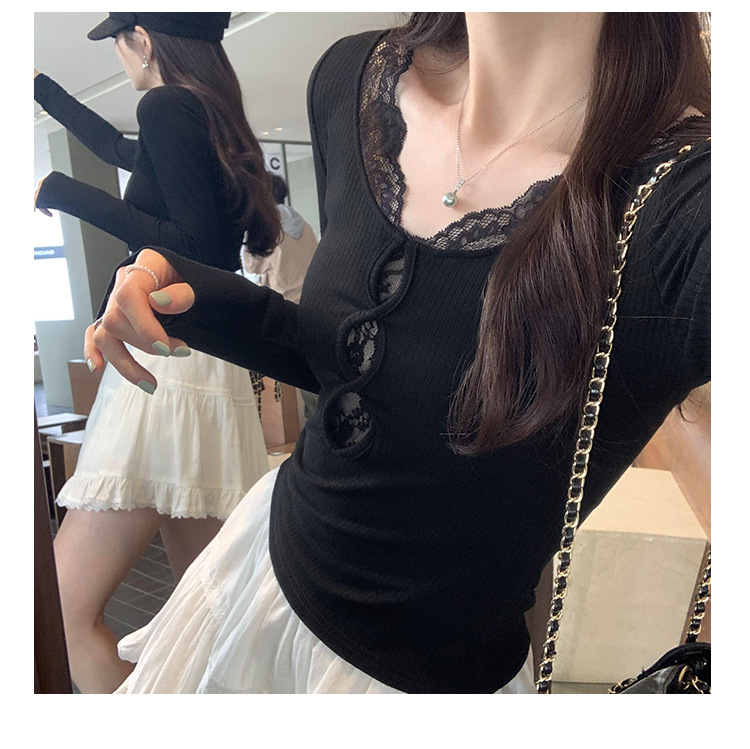 가을 겨울 베이직 달콤하고 순수한 스타일 슬림핏 레이스 긴팔 티셔츠 여성복 71651