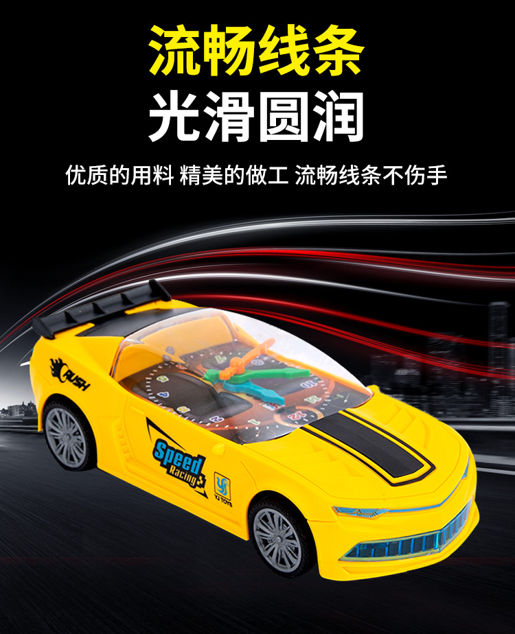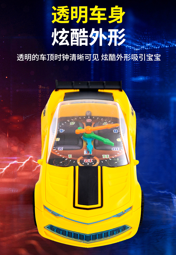국경 간 새로운 전기 범용 시계 작은 노란색 자동차 조명 음악 소년과 어린이 장난감 자동차 공장 아울렛스토어 가기