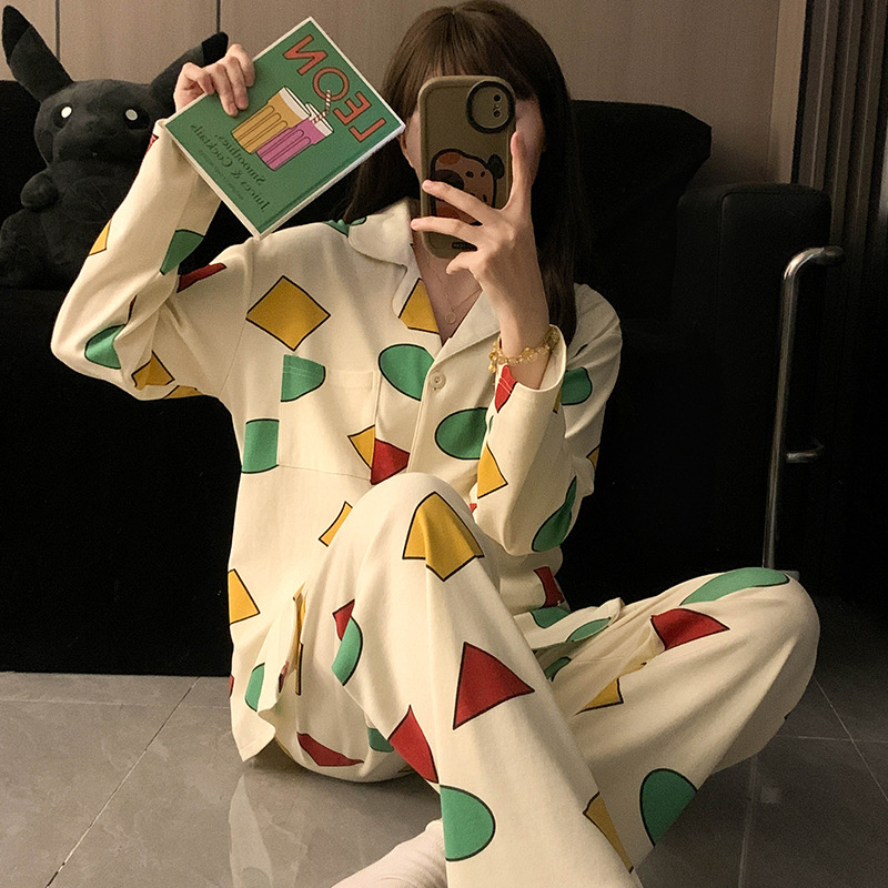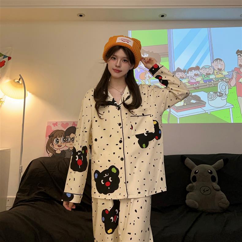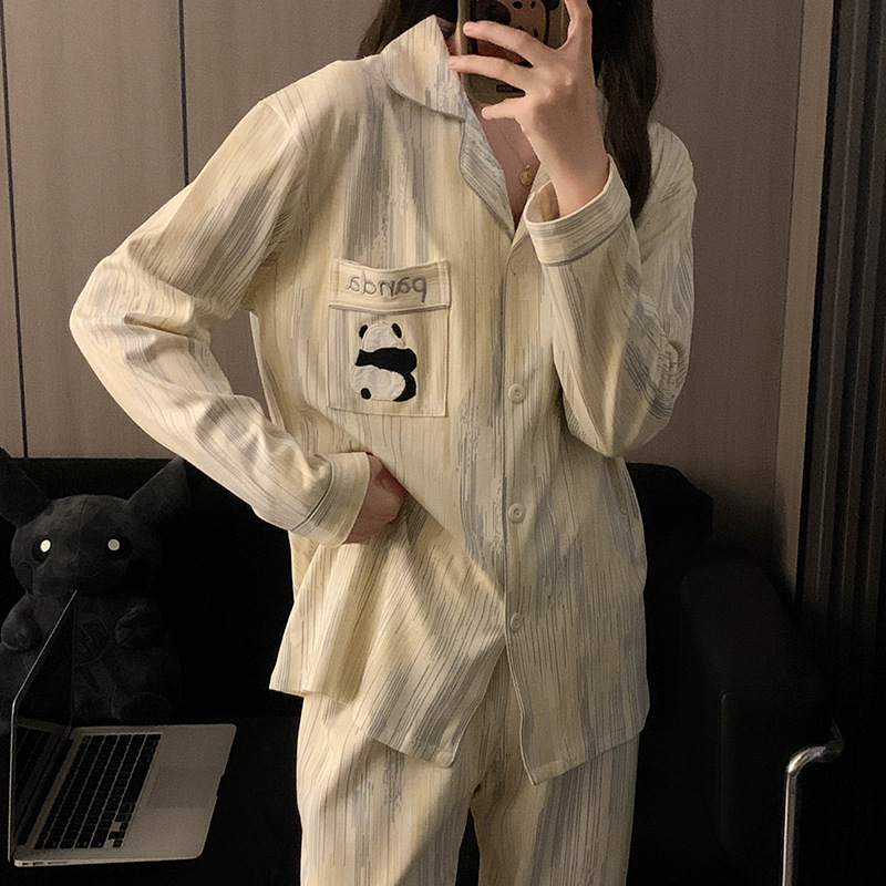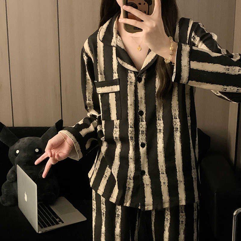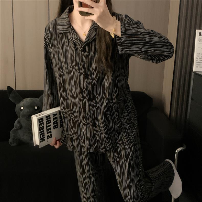 Houndstooth 스타일 Ins 레트로 스타일 커플 파자마 여성 봄과 가을 순수 면 긴 소매 투피스 인터넷 인기 남성 홈 의류스토어 가기