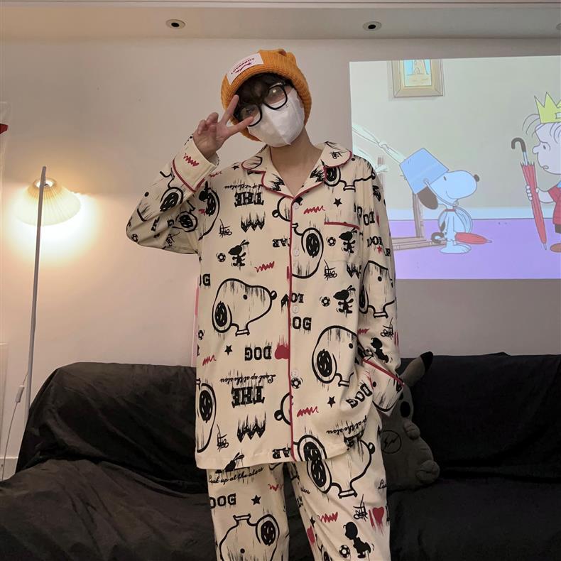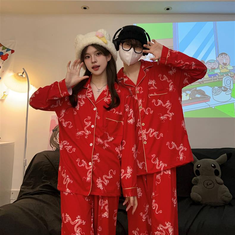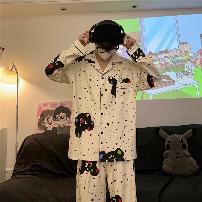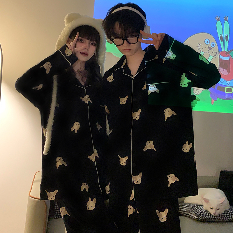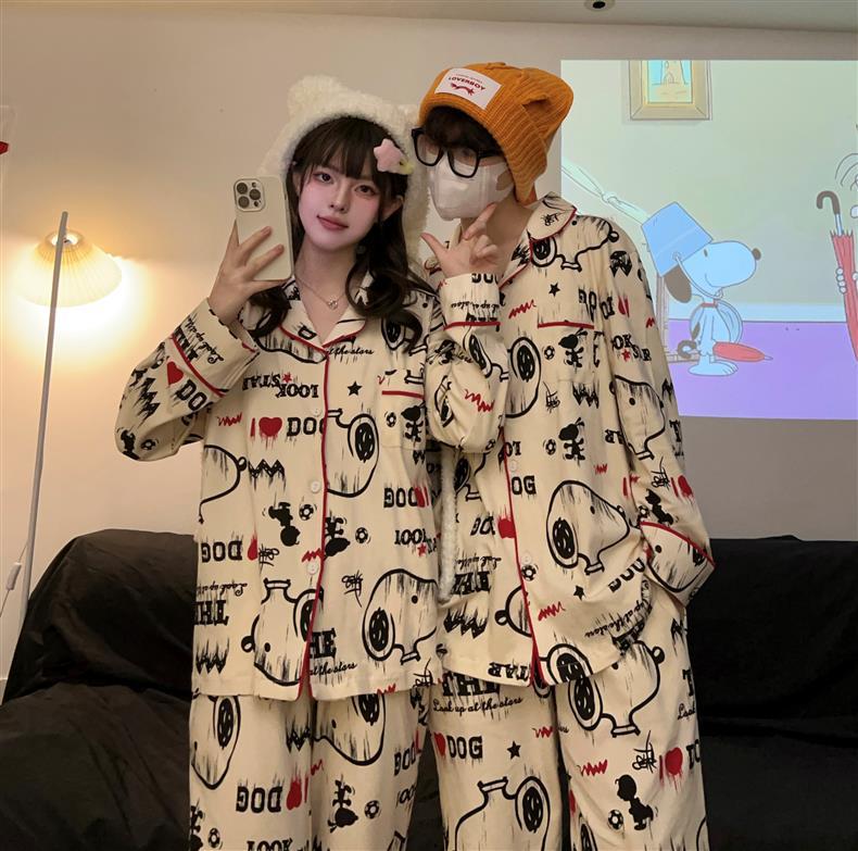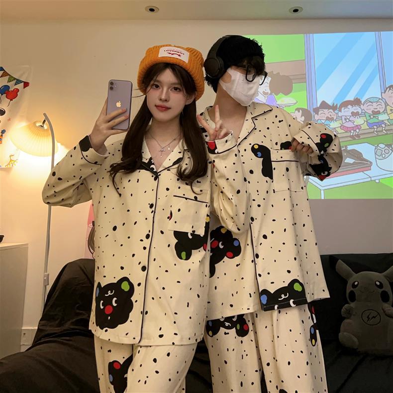 Houndstooth 스타일 Ins 레트로 스타일 커플 파자마 여성 봄과 가을 순수 면 긴 소매 투피스 인터넷 인기 남성 홈 의류