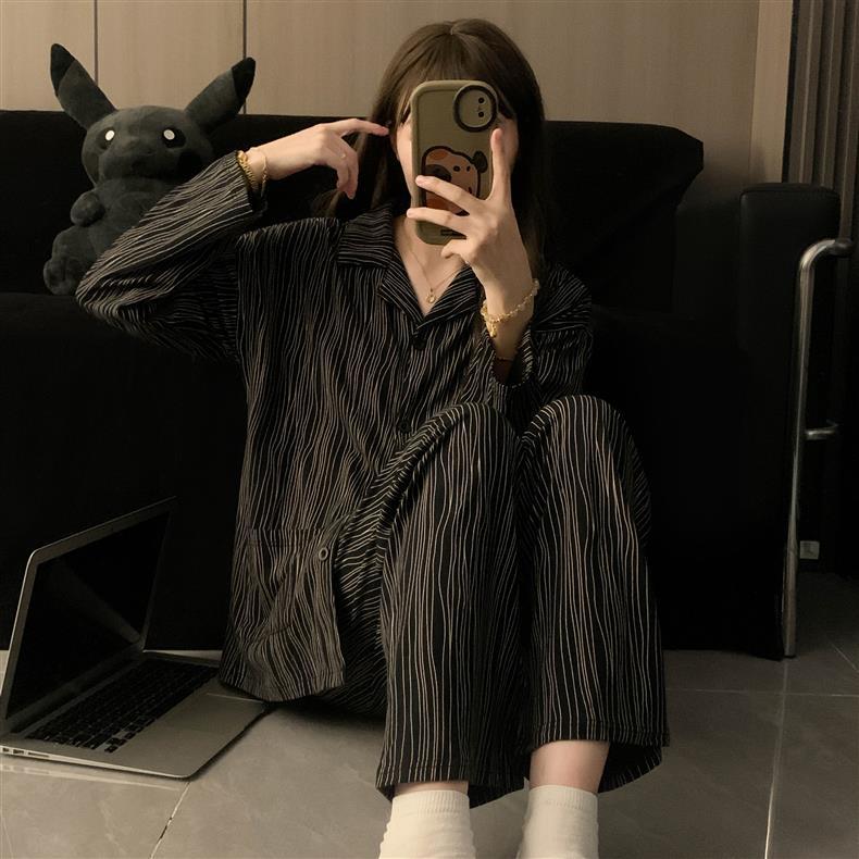 • 눈부신 블랙 스트라이프 긴소매 + 바지