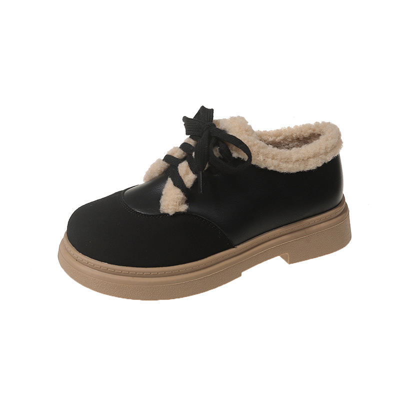 2024 가을과 겨울 새로운 로우 힐 스퀘어 힐 기모 코튼 슈즈 여성 온라인 패션 한국 레이스 업 컬러 매칭 레이스 업 스노우 부츠스토어 가기