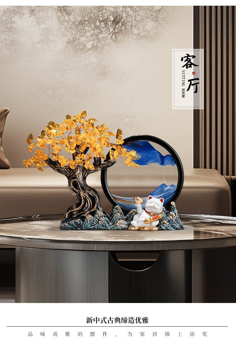 대규모 행운의 퀵 샌드 페인팅 장식품 재산을 만드는 고양이 사무실 거실 TV 캐비닛 와인 캐비닛 장식 집들이 새 집 선물