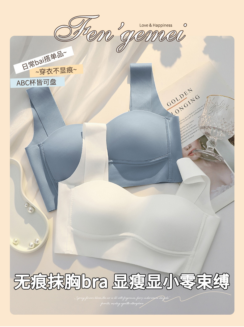 스트랩리스 트레이스 스포츠 속옷 여성용 조끼 얇은 작은 가슴 푸쉬 업 대형 가슴 쇼블 작은 반지리스 브라