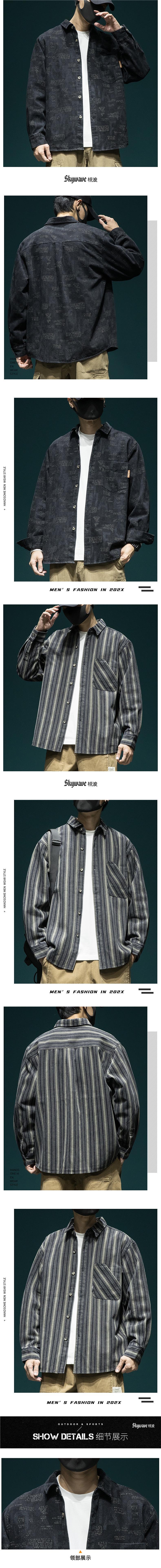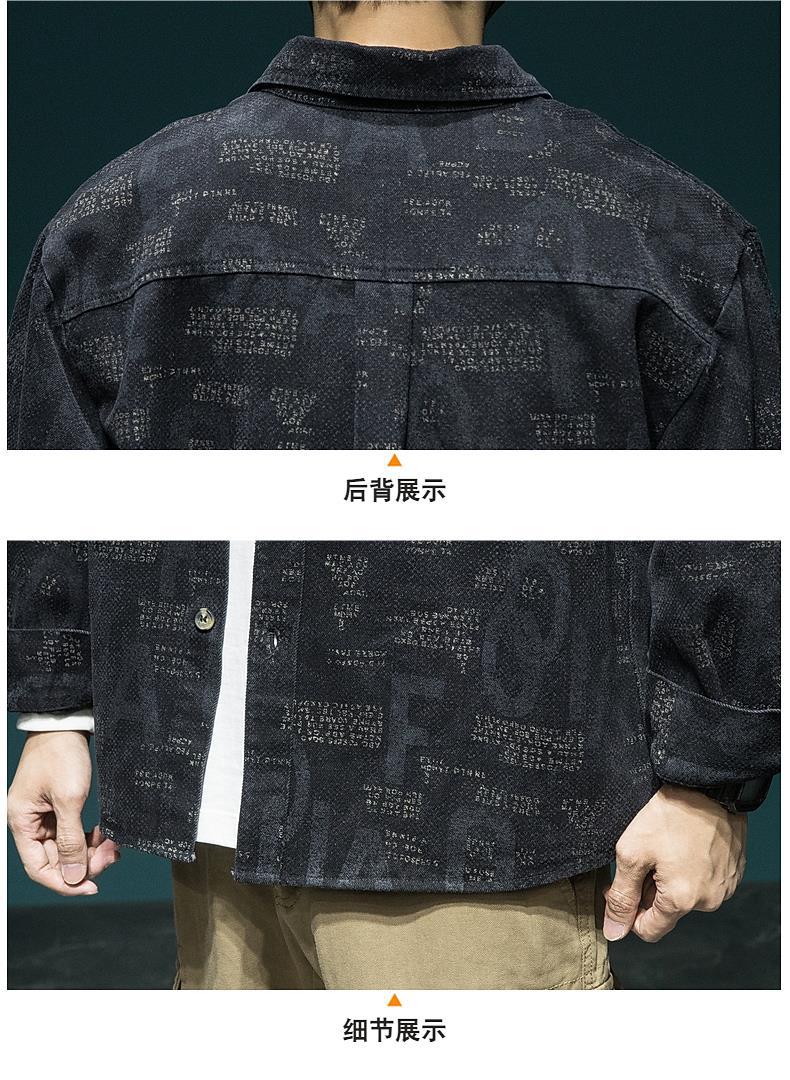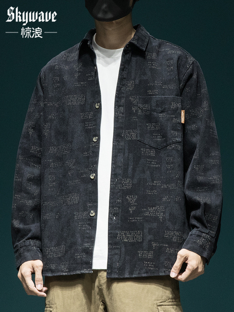 미국 스타일 레트로 전체 인쇄 데님 셔츠 남자의 봄과 가을 새로운 느슨한 플러스 사이즈 일본 스타일 패션 브랜드 긴 소매 셔츠 재킷