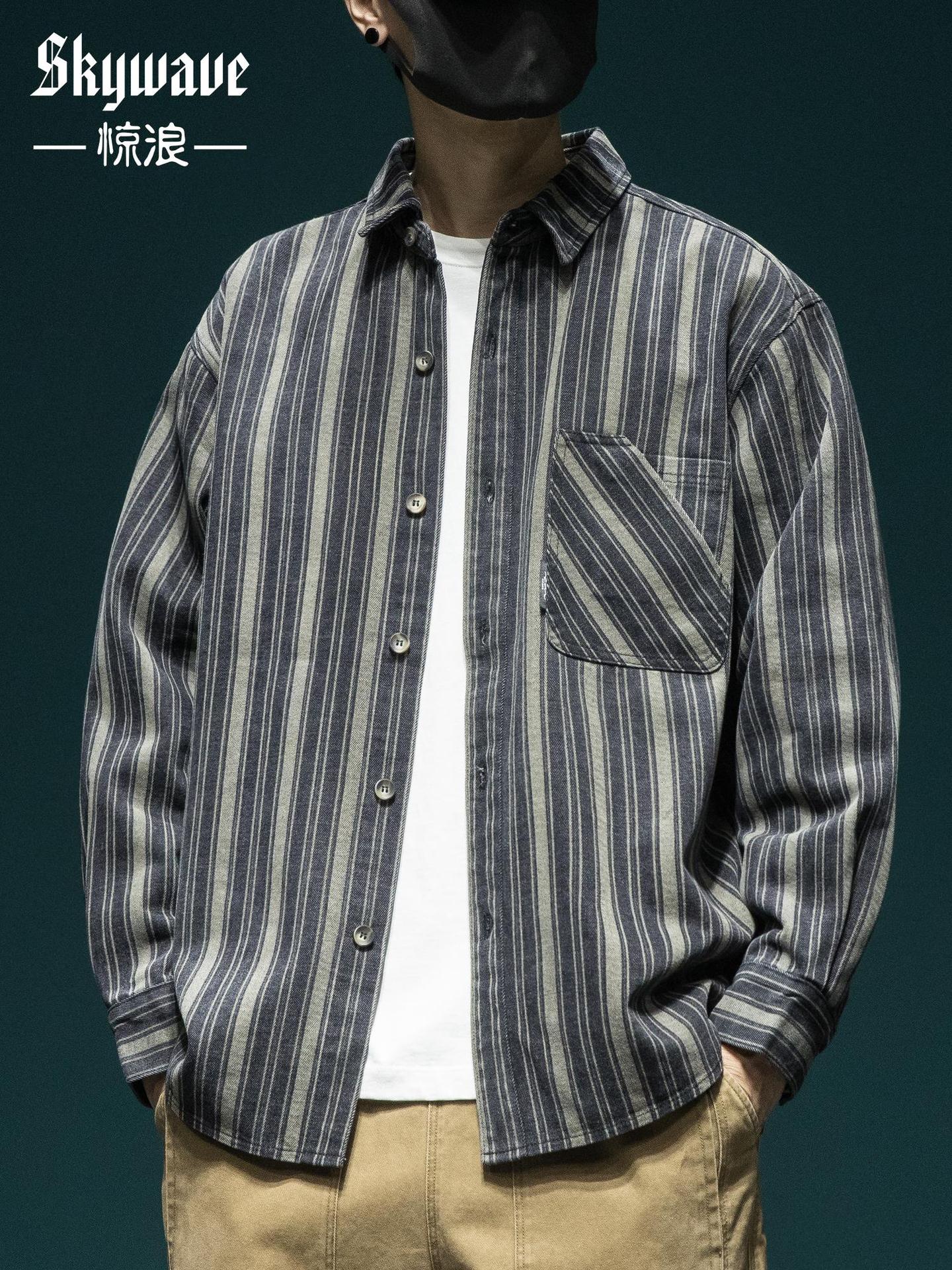 미국 스타일 레트로 전체 인쇄 데님 셔츠 남자의 봄과 가을 새로운 느슨한 플러스 사이즈 일본 스타일 패션 브랜드 긴 소매 셔츠 재킷스토어 가기