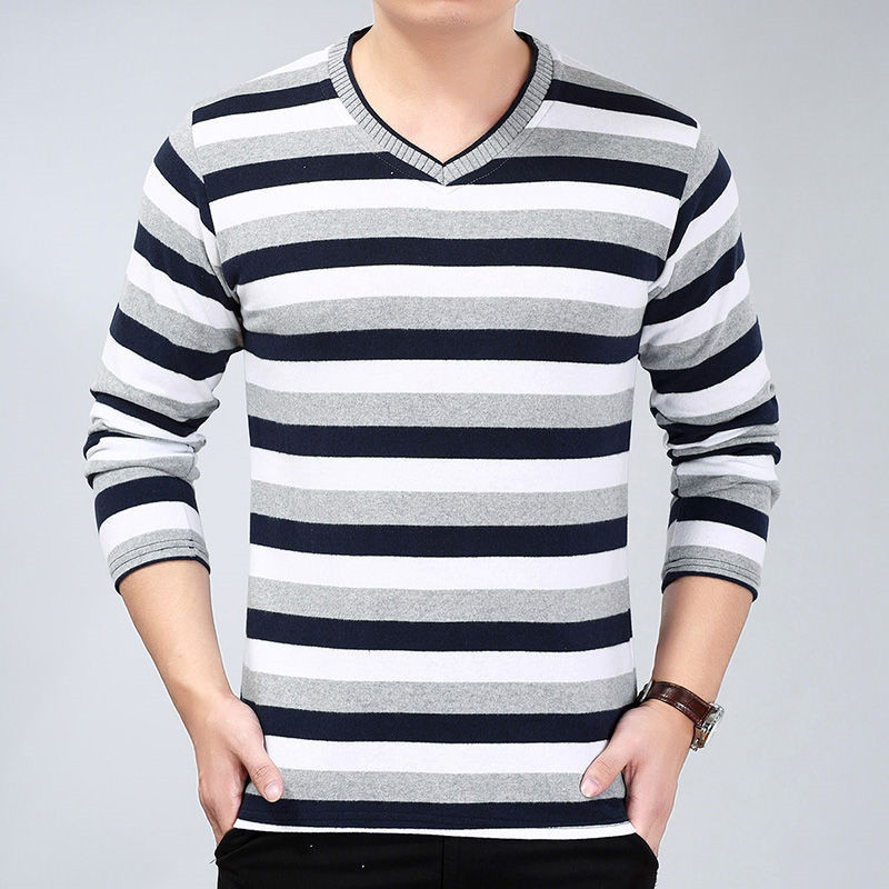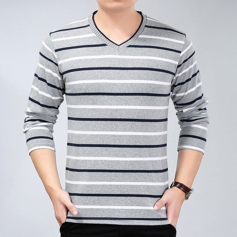 남자 긴팔 티셔츠 크루 넥 스프링베이스 셔츠 코튼 스트라이프 스웨터 캐주얼 올 매치 가을 탑스토어 가기