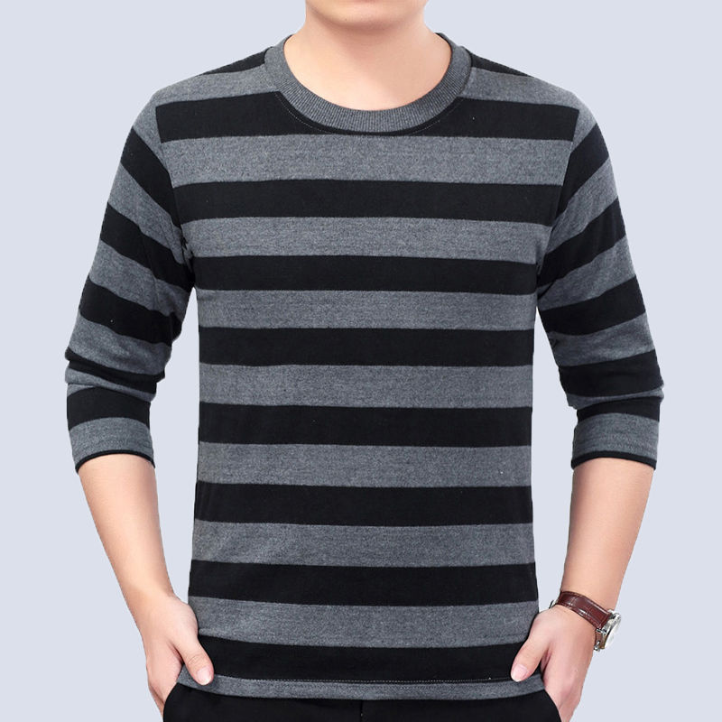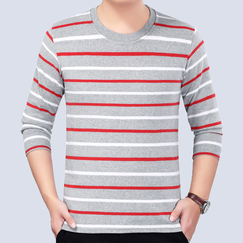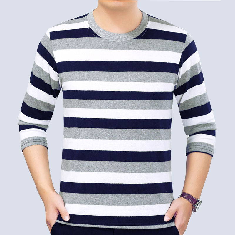 남자 긴팔 티셔츠 크루 넥 스프링베이스 셔츠 코튼 스트라이프 스웨터 캐주얼 올 매치 가을 탑