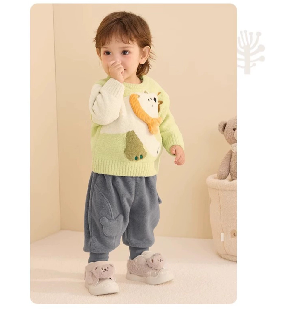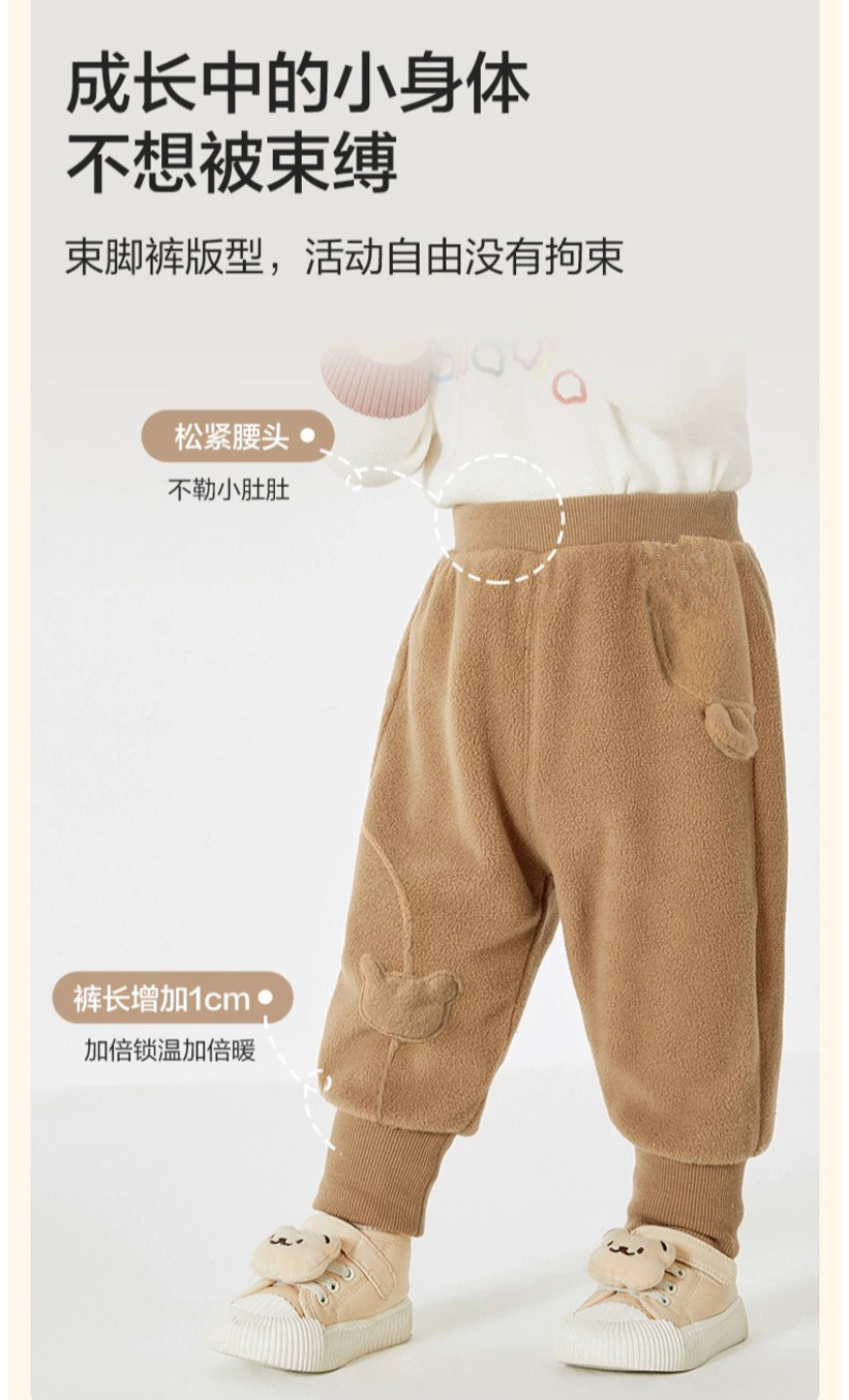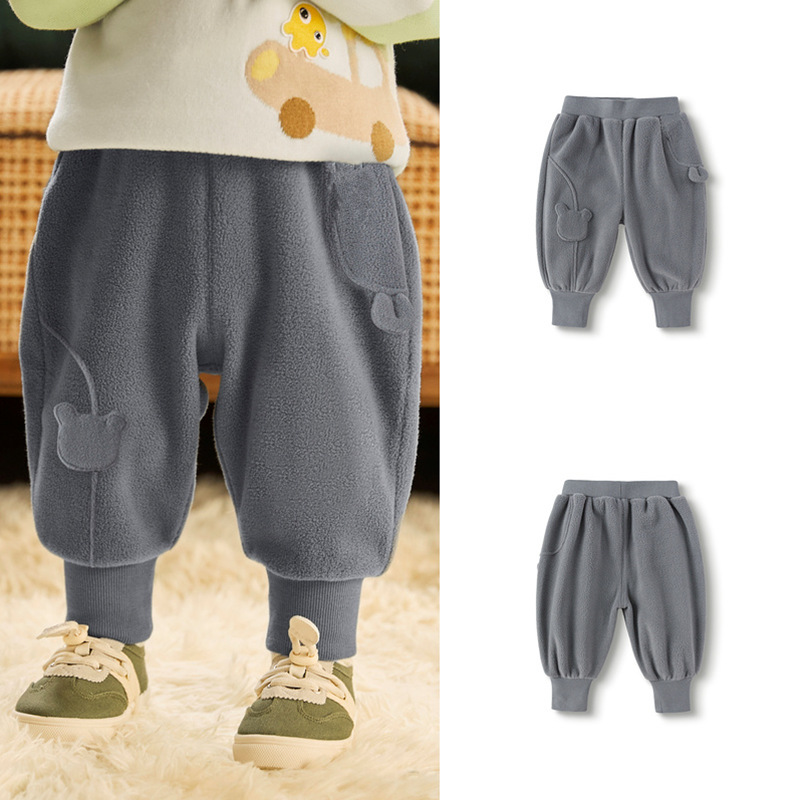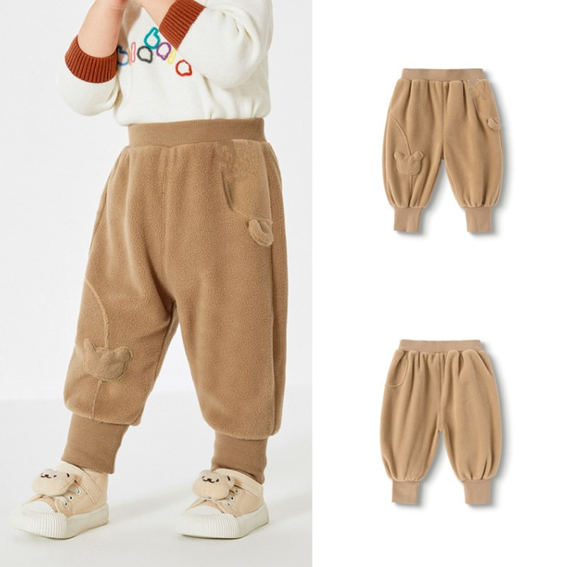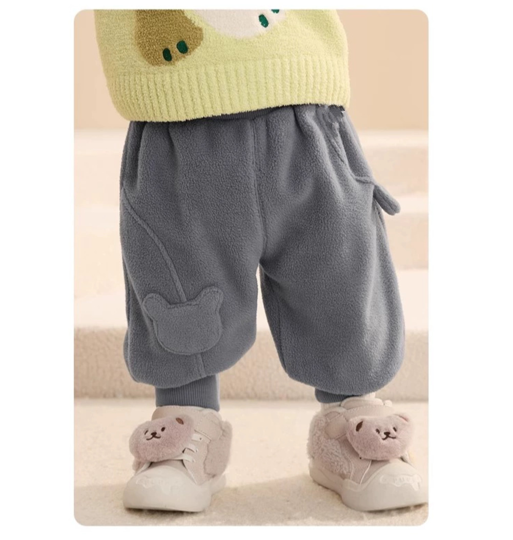 아기 벨벳 바지 아기 따뜻한 바지 어린이 스포츠 바지 바지 2024 겨울 느슨한 캐주얼 대형 PP 바지스토어 가기