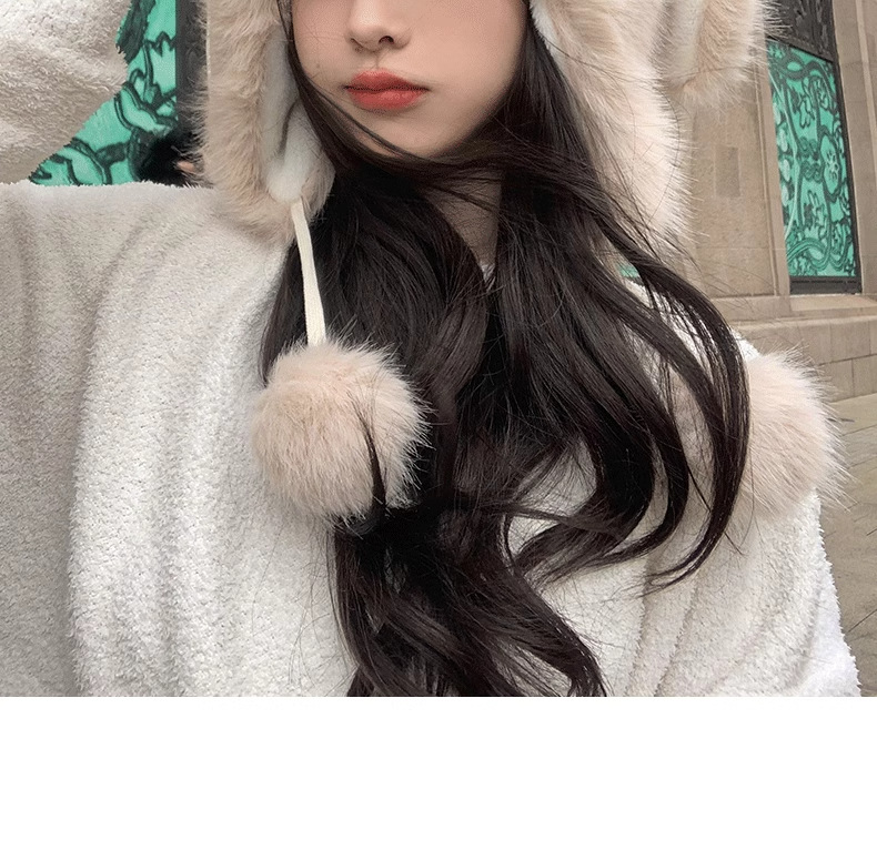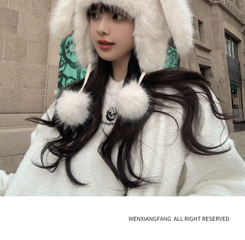 2024 새로운 귀여운 풍부한 토끼 봉제 모자 따뜻한 귀 모자 차가운 라이딩 레이 펑 모자 토끼 귀스토어 가기