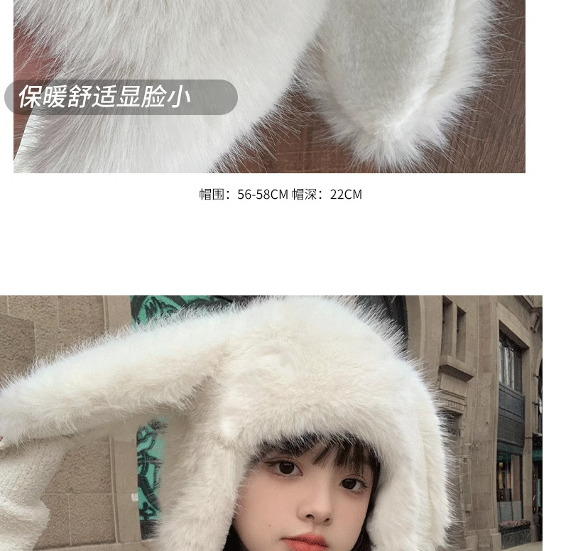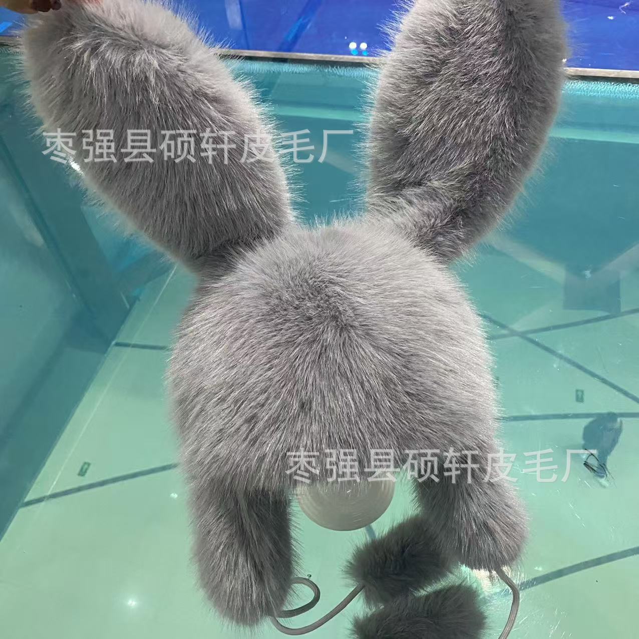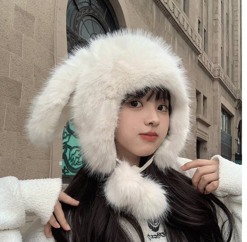 2024 새로운 귀여운 풍부한 토끼 봉제 모자 따뜻한 귀 모자 차가운 라이딩 레이 펑 모자 토끼 귀