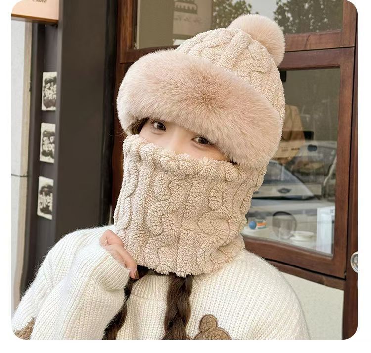 새로운 기모 두꺼운 모자와 목 통합 여성 가을 및 겨울 사이클링 방풍 전기 자동차 따뜻한 풀오버 캡