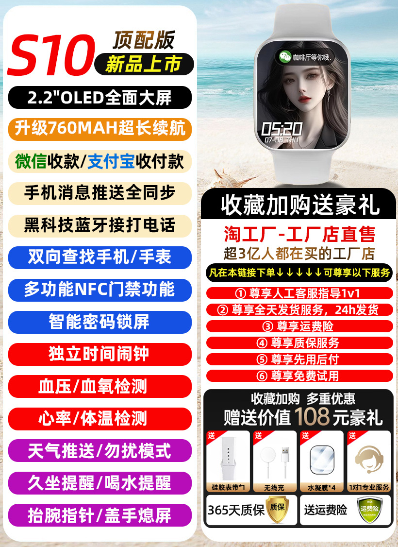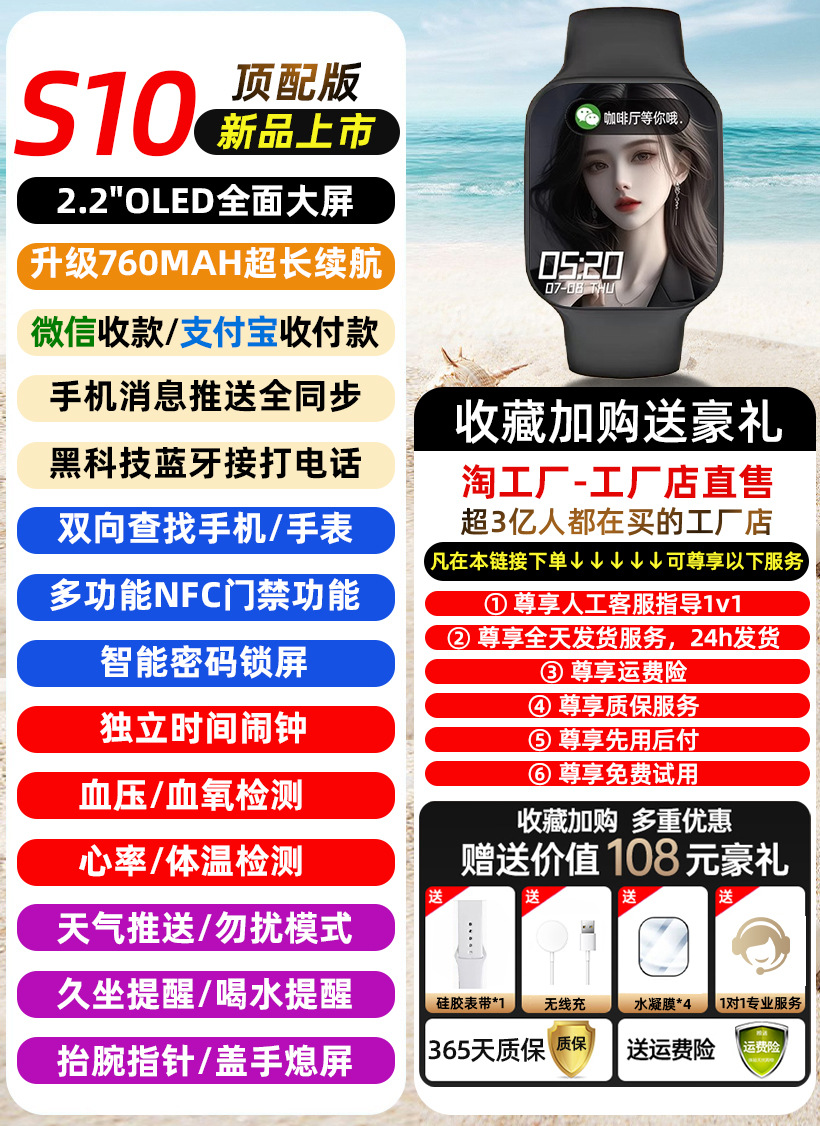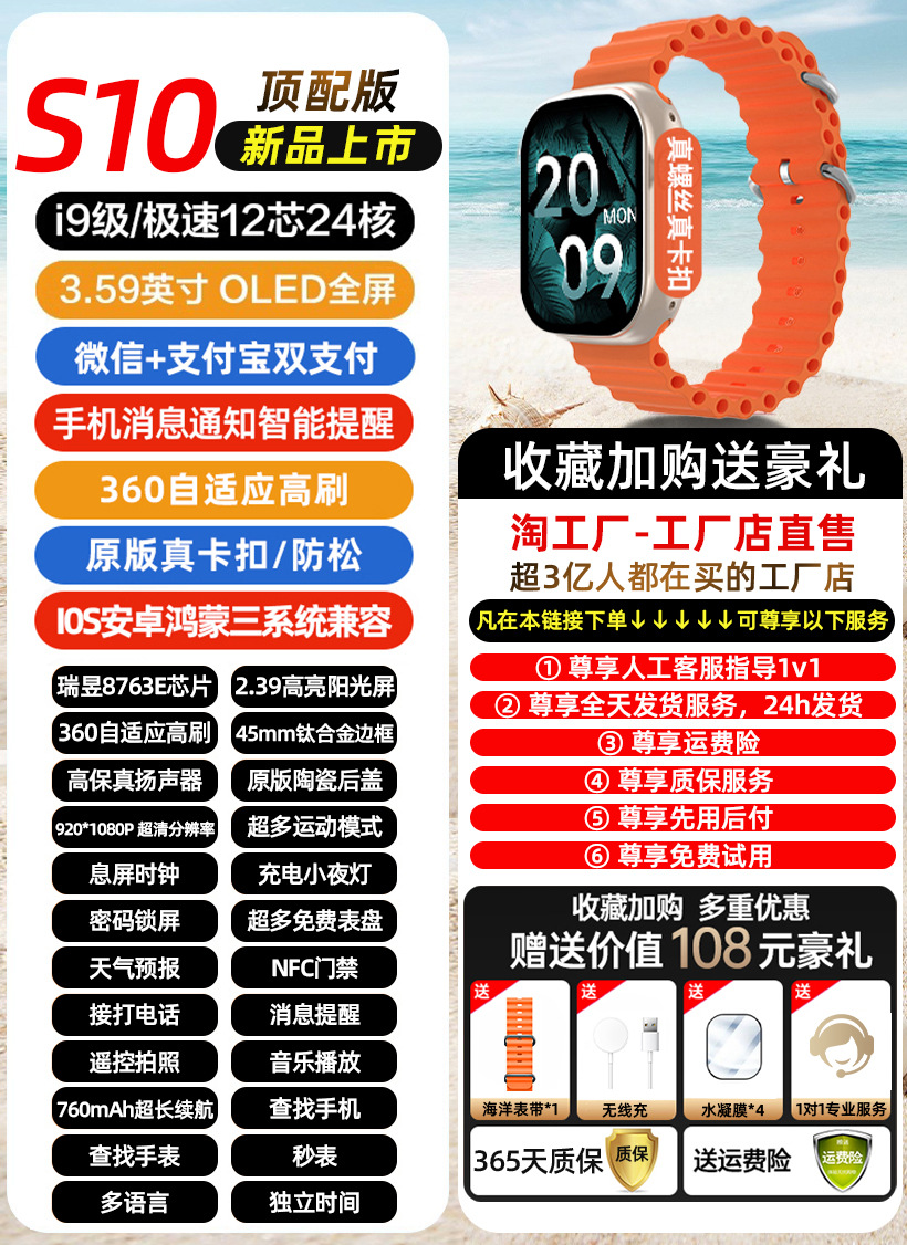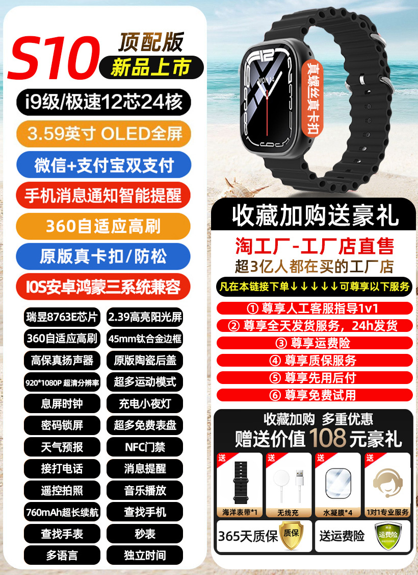 블루투스의 새로운 Huaqiang North Watch s10 스마트 s9ultra top 버전은 응답 및 통화 기능을 가지고 있습니다.스토어 가기