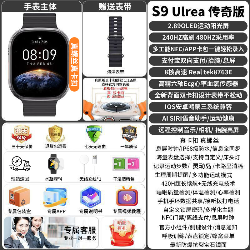 블루투스의 새로운 Huaqiang North Watch s10 스마트 s9ultra top 버전은 응답 및 통화 기능을 가지고 있습니다.