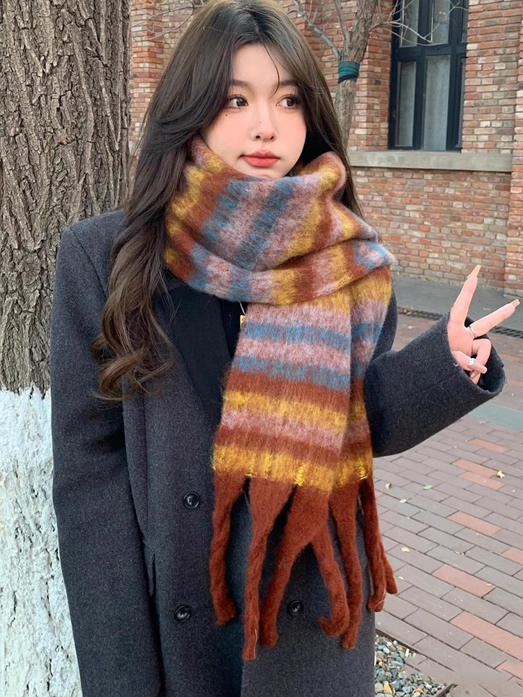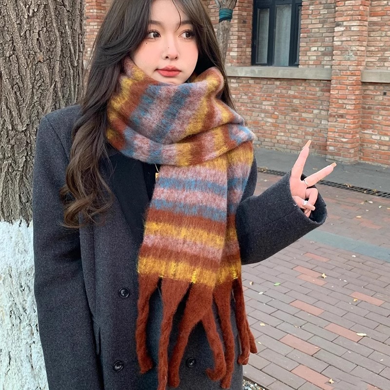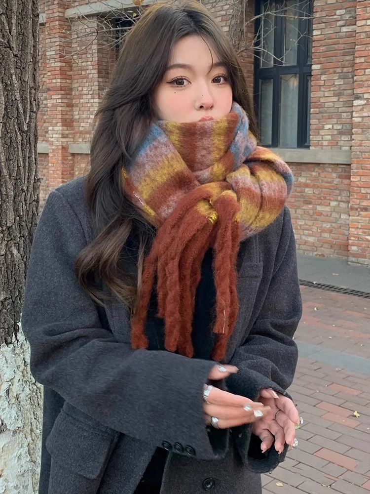 두꺼운 따뜻한 스카프 2024 가을과 겨울 여성의 하이 엔드 모헤어 모방 캐시미어 스카프 린드 소프트 왁스 커플 트렌디스토어 가기