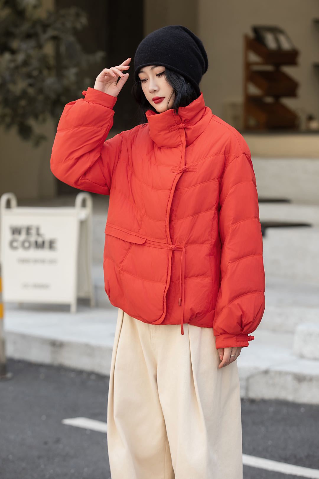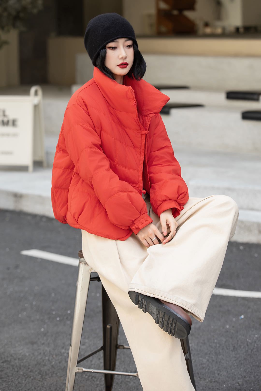 쇼트 다운 재킷 여자 2024 새로운 겨울 중간 두꺼운 화이트 덕 다운 루즈 패션 올 매치 작은 재킷