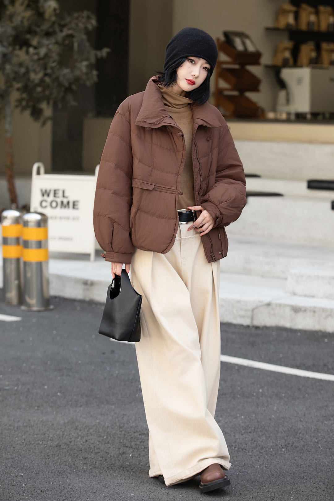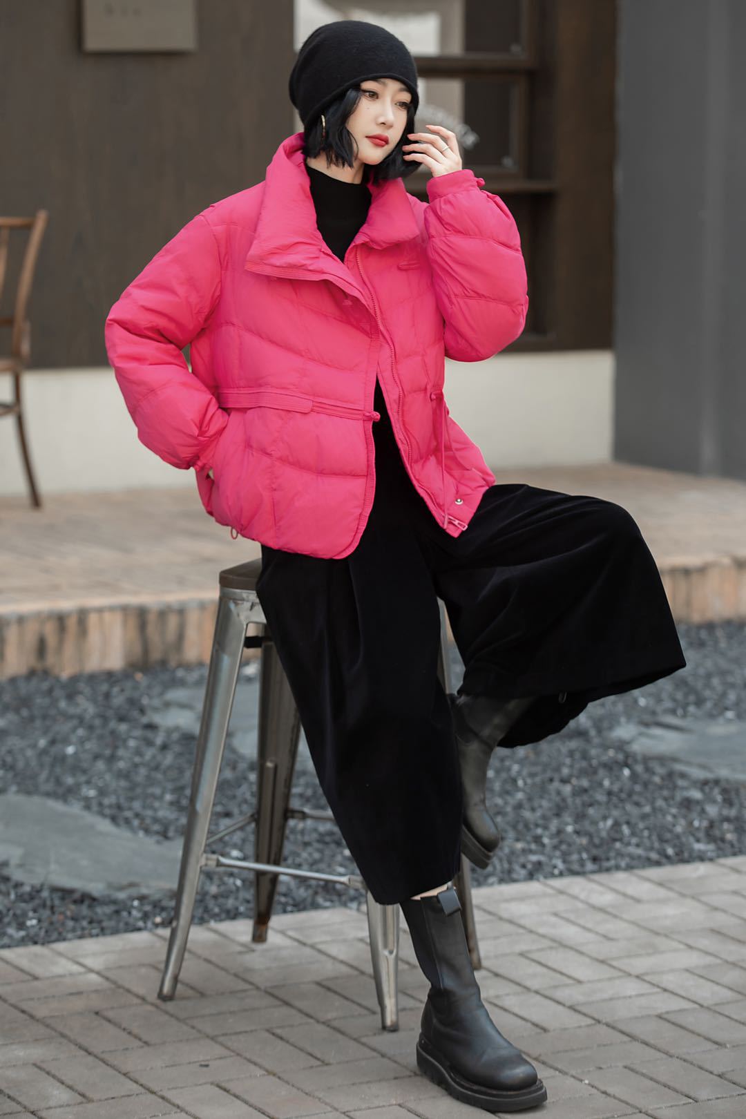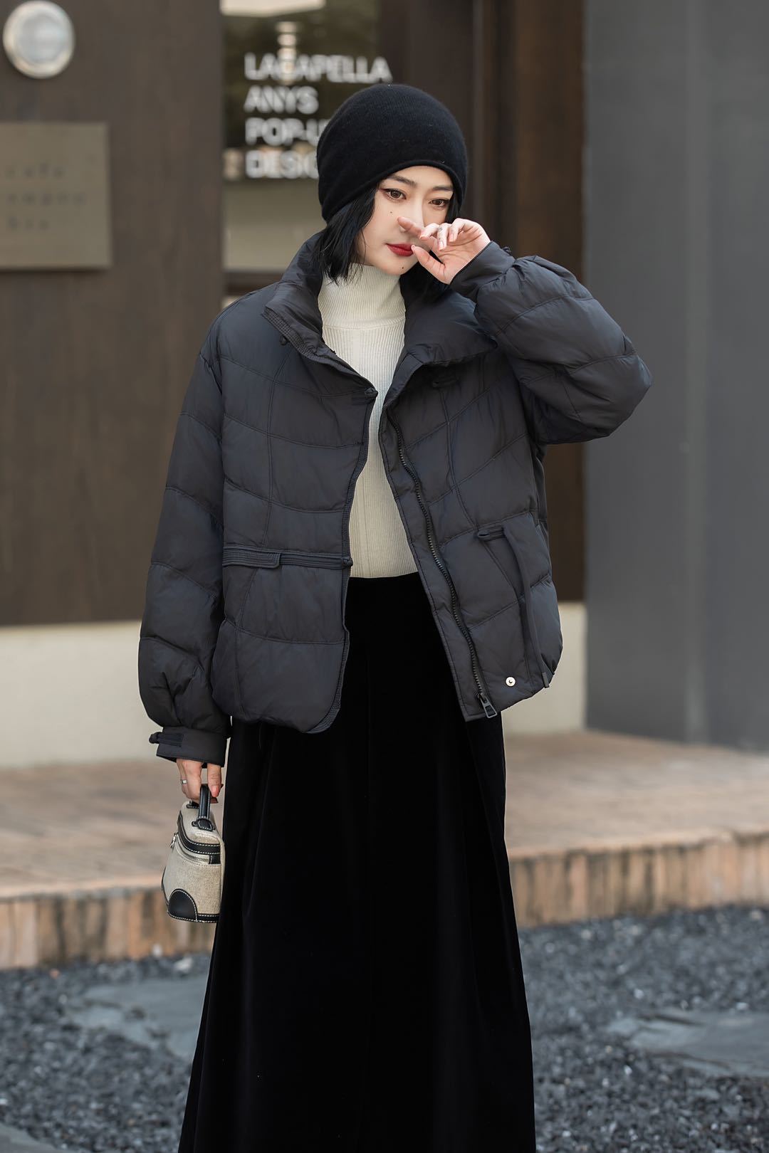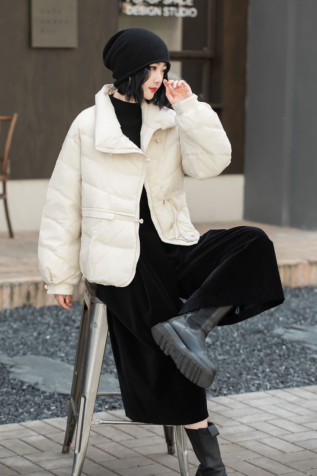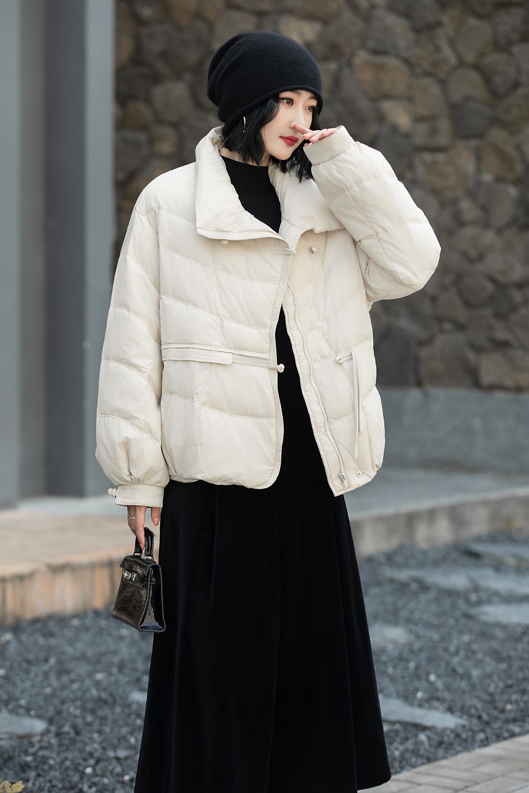 쇼트 다운 재킷 여자 2024 새로운 겨울 중간 두꺼운 화이트 덕 다운 루즈 패션 올 매치 작은 재킷스토어 가기