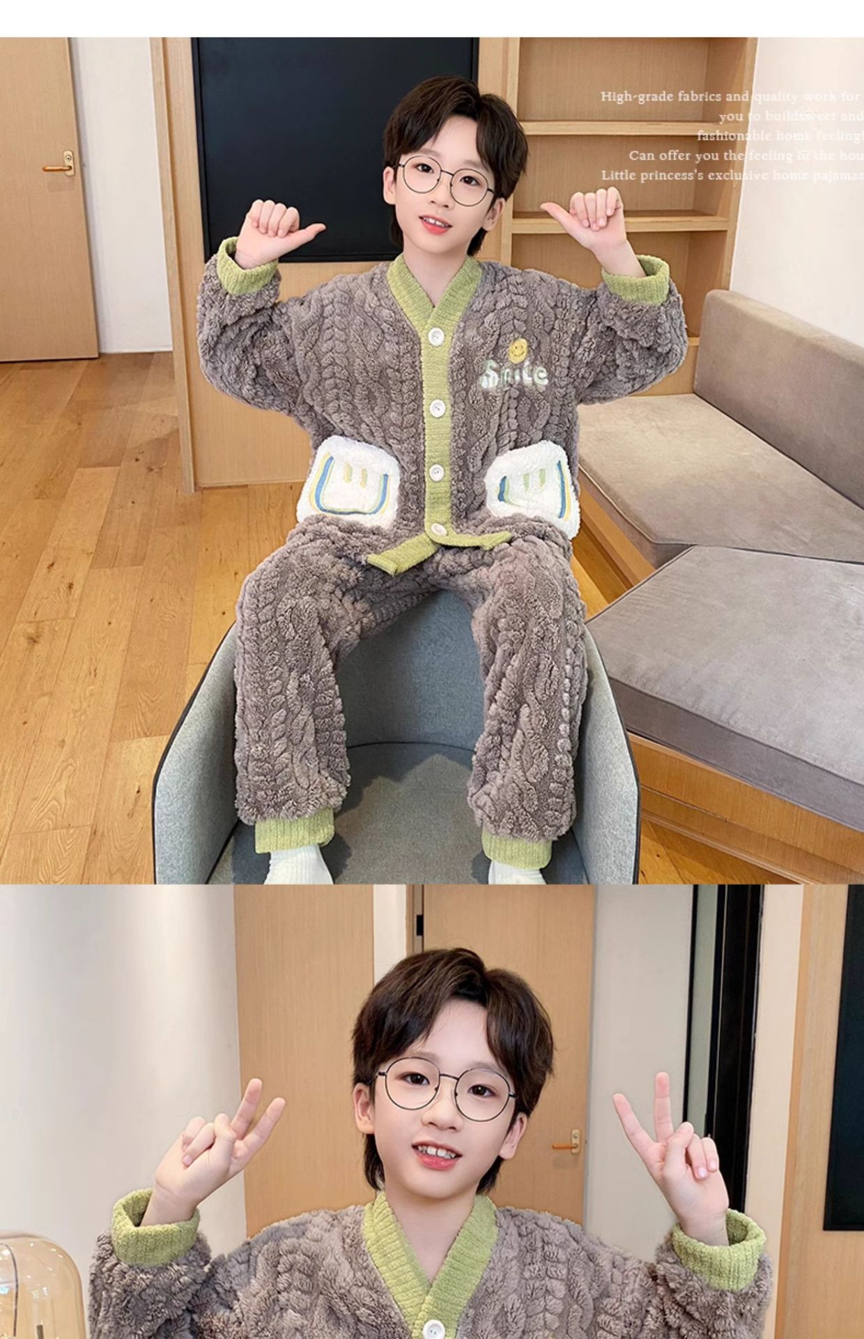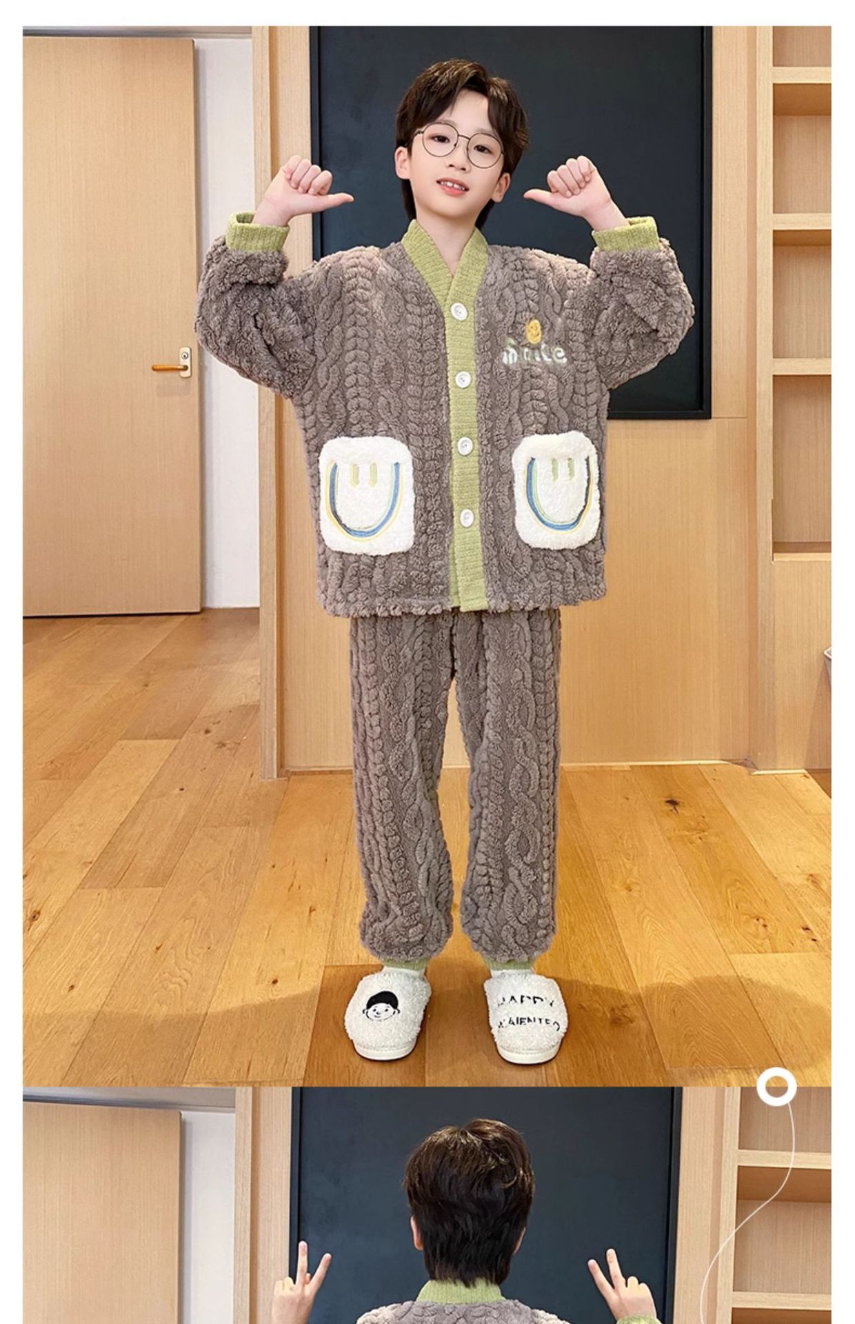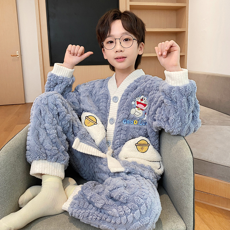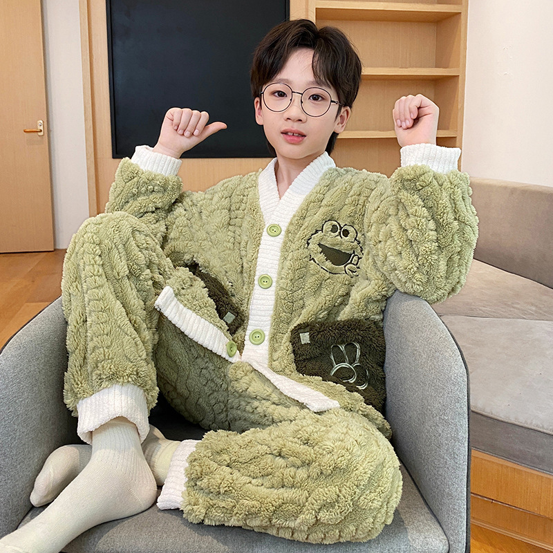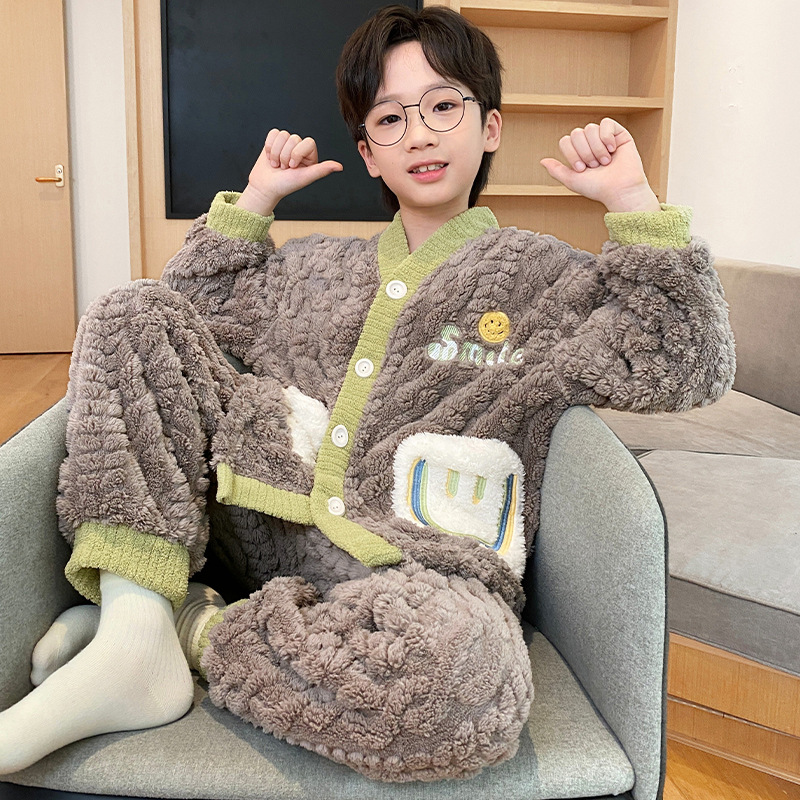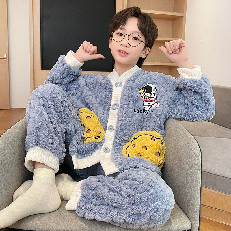 어린이 산호 벨벳 잠옷 소년 가을 겨울 2025 새로운 겨울 스타일 플란넬 청소년 어린 소년 가정복스토어 가기