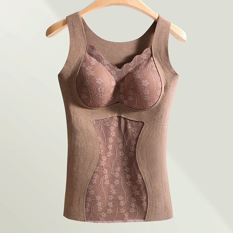 가을과 겨울 새로운 레이스 복부 따뜻한 조끼 착용 프리 브라 슬리밍 기모 두꺼운 마크 열 속옷 없음