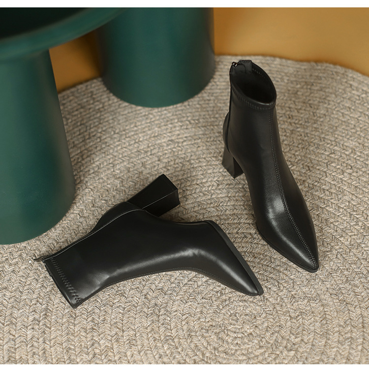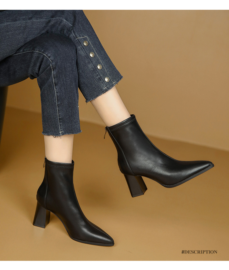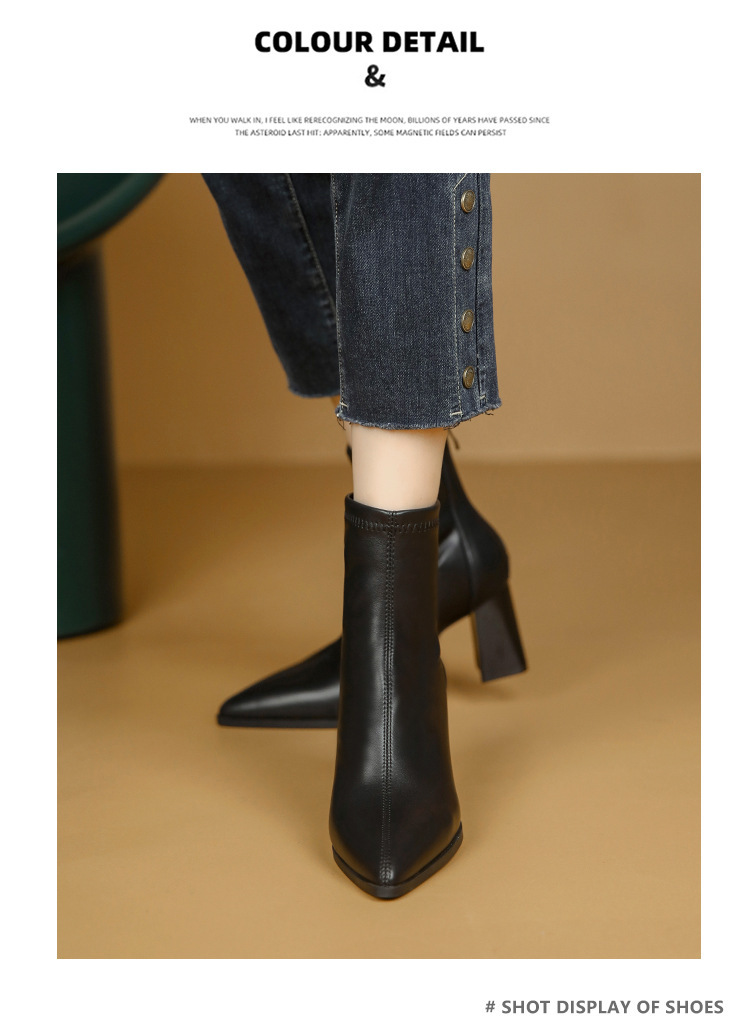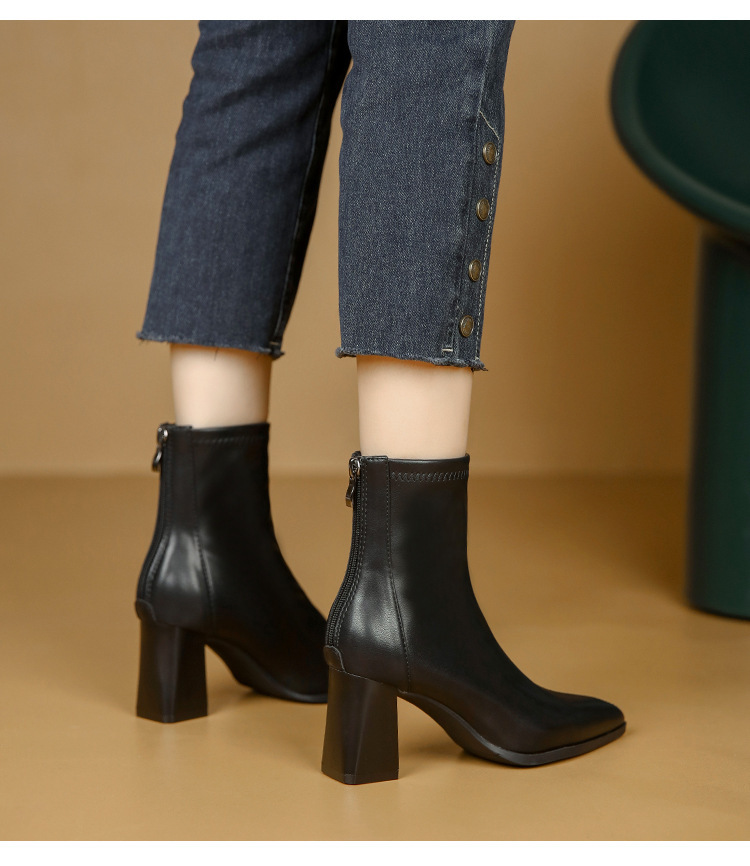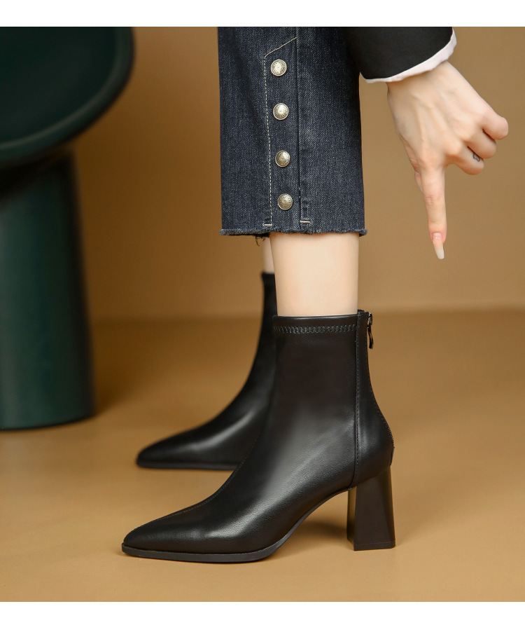 Martin Boots 여성용 두꺼운 부드러운 가죽 2024 년 가을 및 겨울 새로운 프랑스 조커 작은 굽 발목 부츠 기모 중간 굽 얇은 부츠