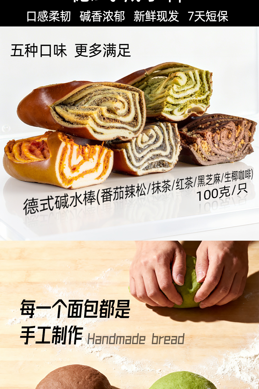 알칼리수 바게트 즉석 조식 식사대용 피트니스 식사 짧은 바게트 수제 고기 가루 말차 유럽빵 한박스스토어 가기