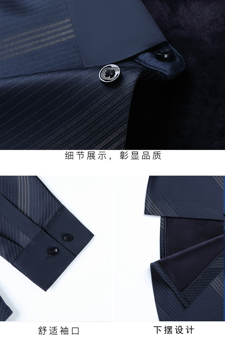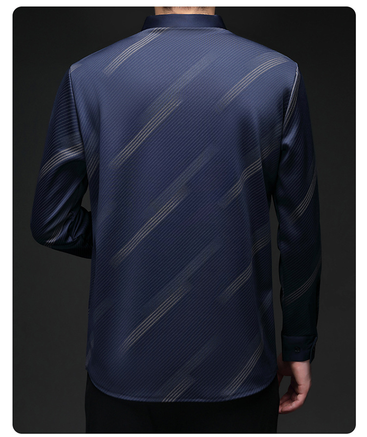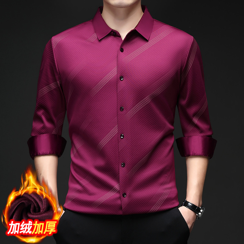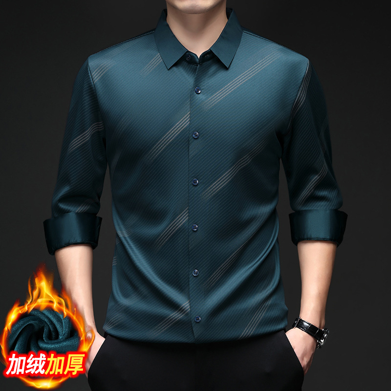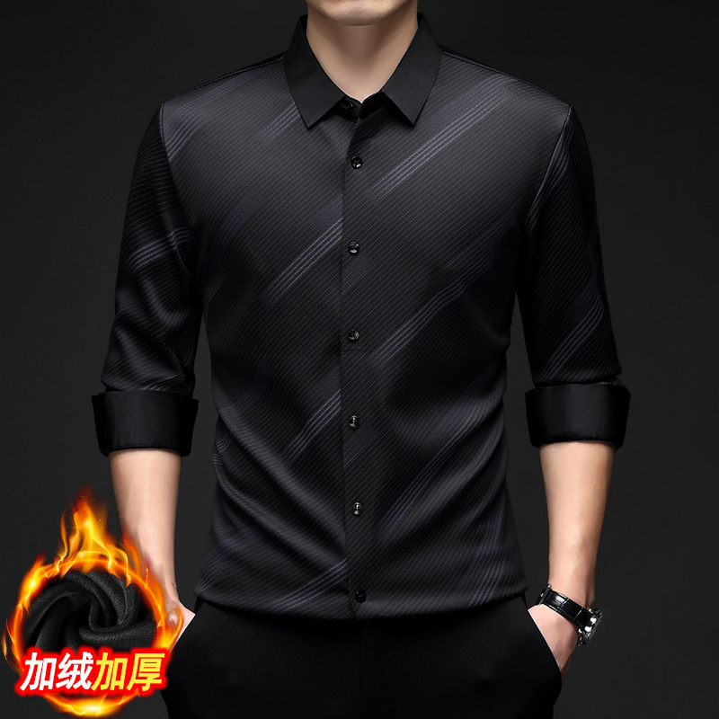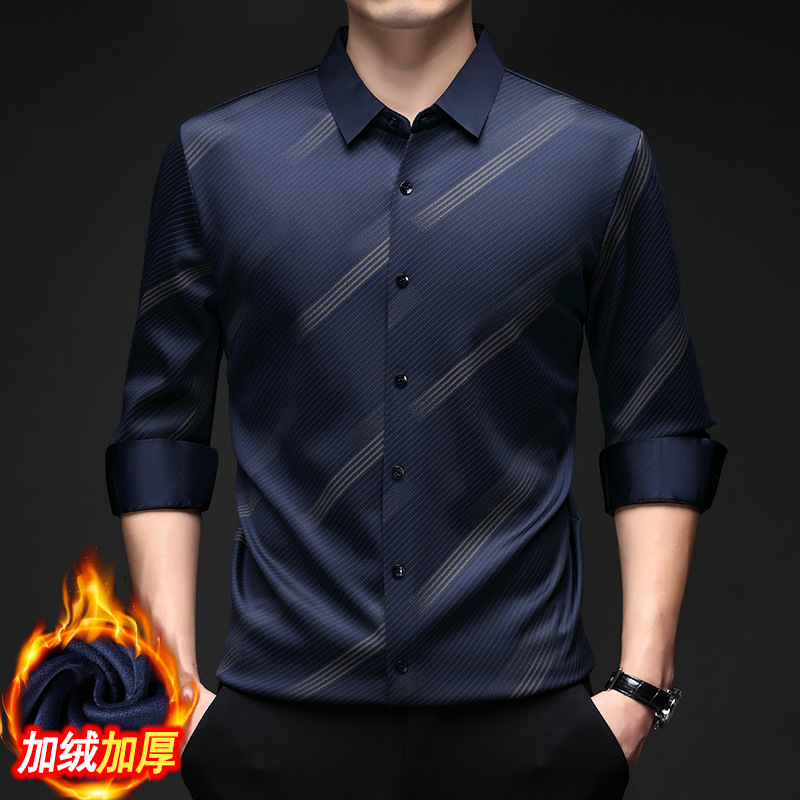 남성용 기모 따뜻한 셔츠 가을과 겨울 두꺼운 사업 캐주얼 하이 엔드 트렌드리스 스트라이프 프린트 옷깃 셔츠