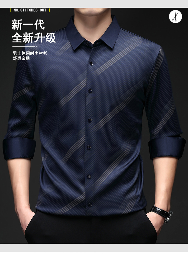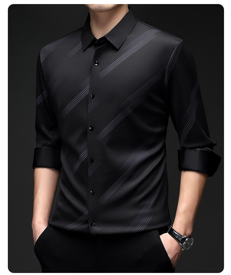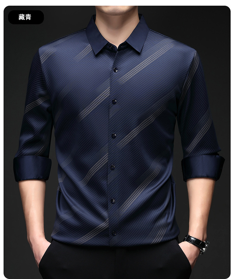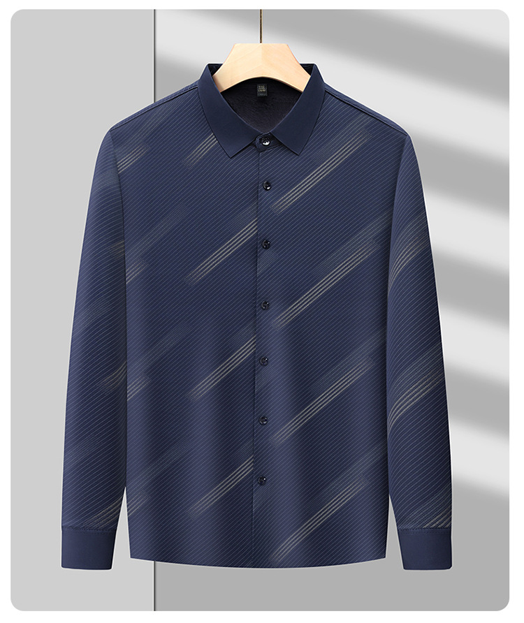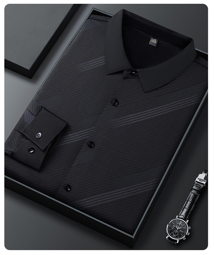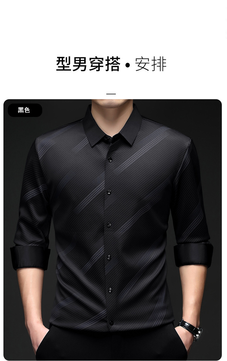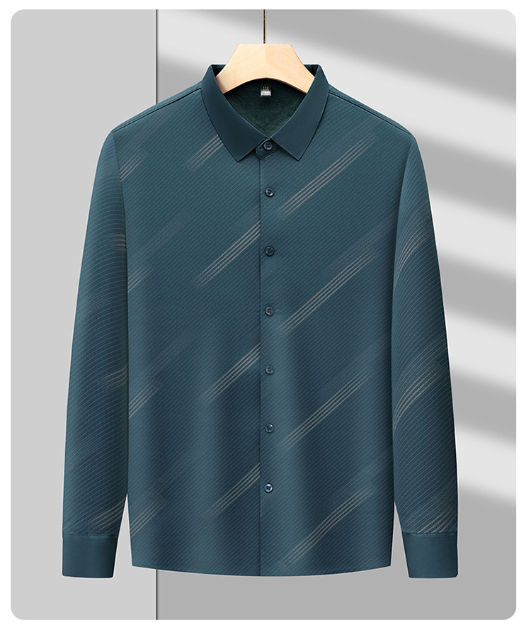 남성용 기모 따뜻한 셔츠 가을과 겨울 두꺼운 사업 캐주얼 하이 엔드 트렌드리스 스트라이프 프린트 옷깃 셔츠