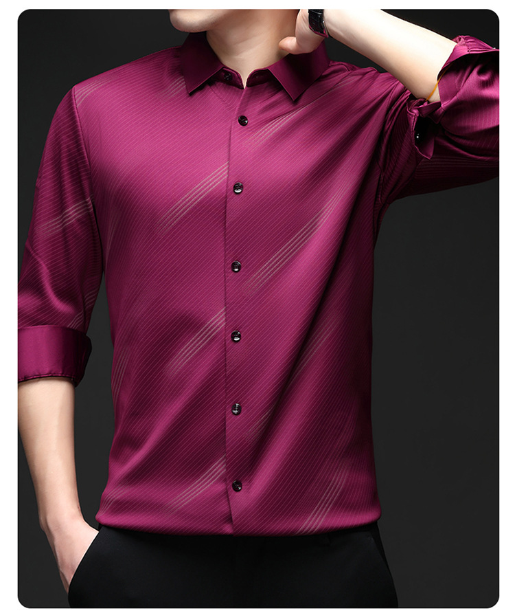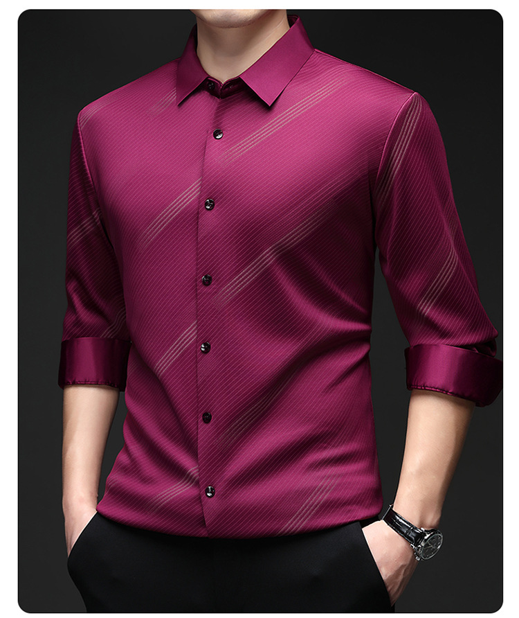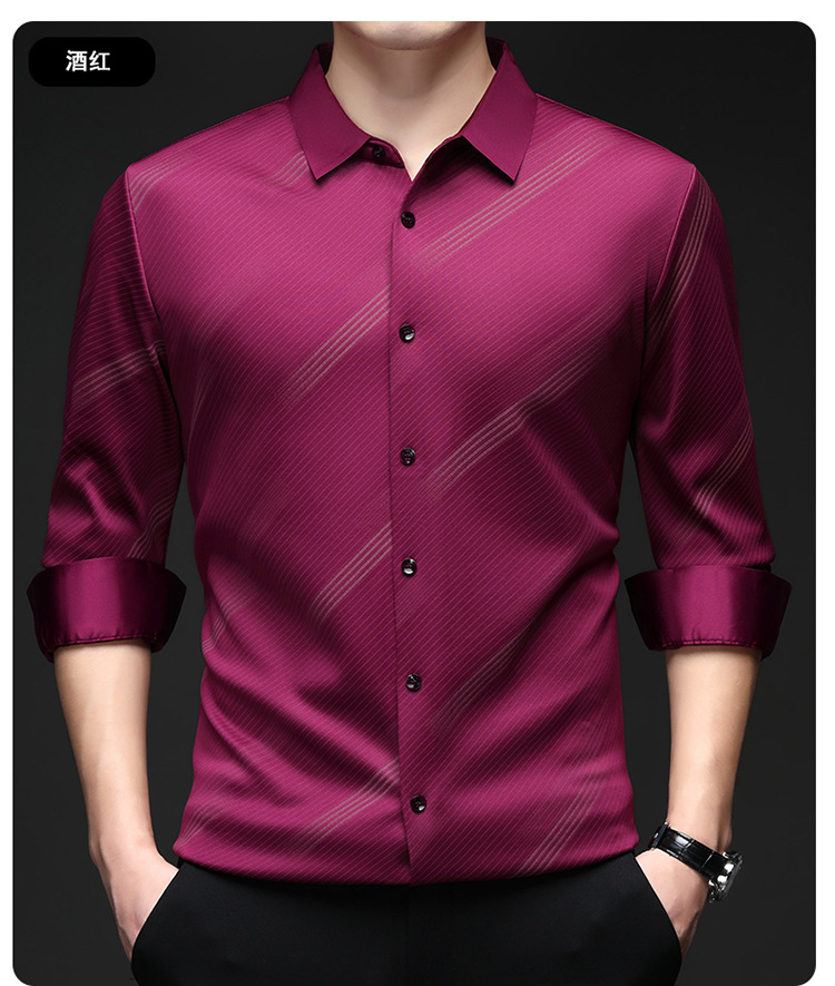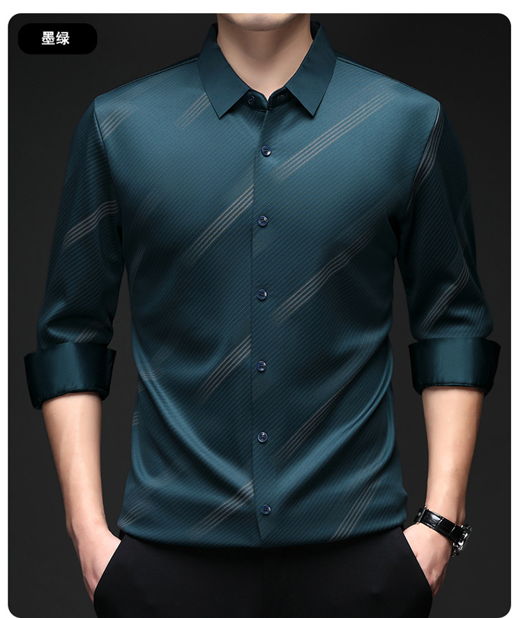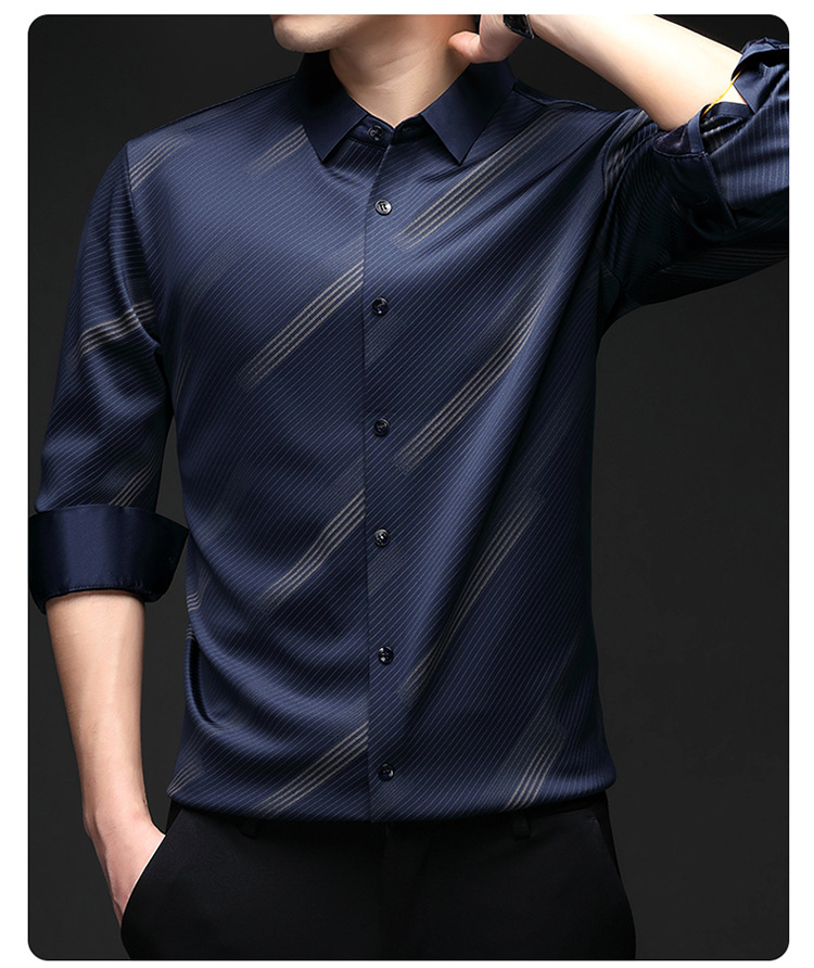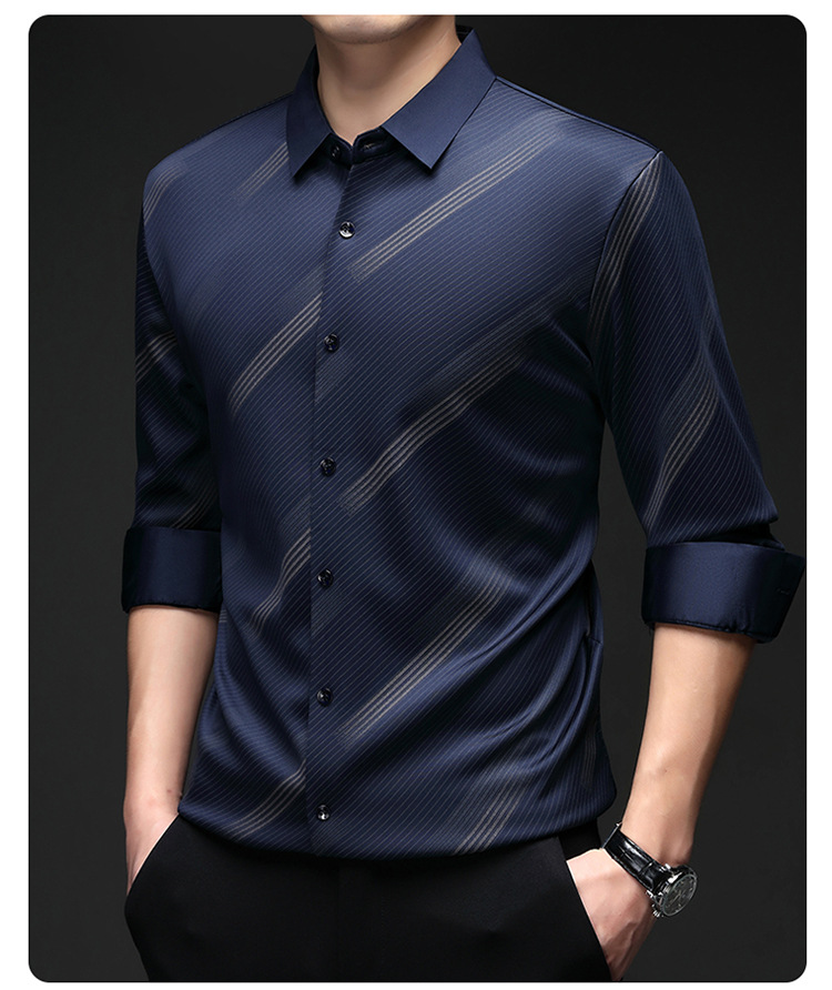 남성용 기모 따뜻한 셔츠 가을과 겨울 두꺼운 사업 캐주얼 하이 엔드 트렌드리스 스트라이프 프린트 옷깃 셔츠