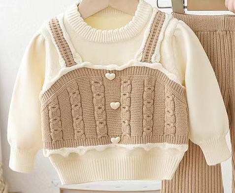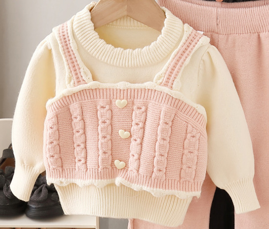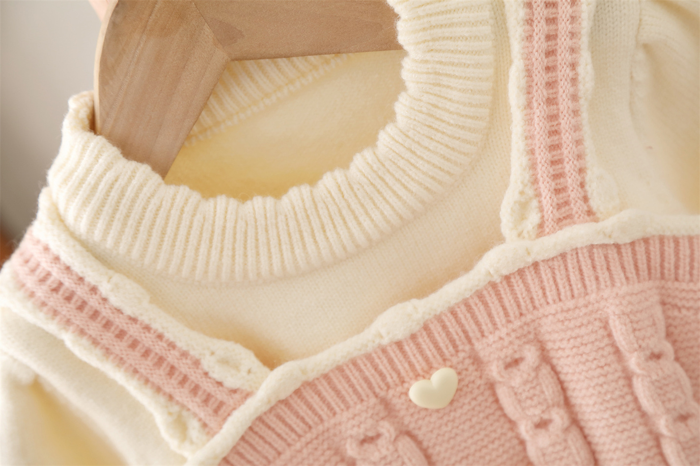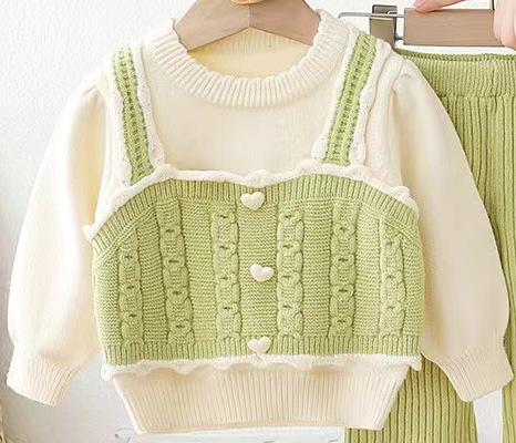 여아용 스웨터 재킷 2024 신상 니트 세트 수제 꽃 모양 털방울 여아 바지 세트스토어 가기
