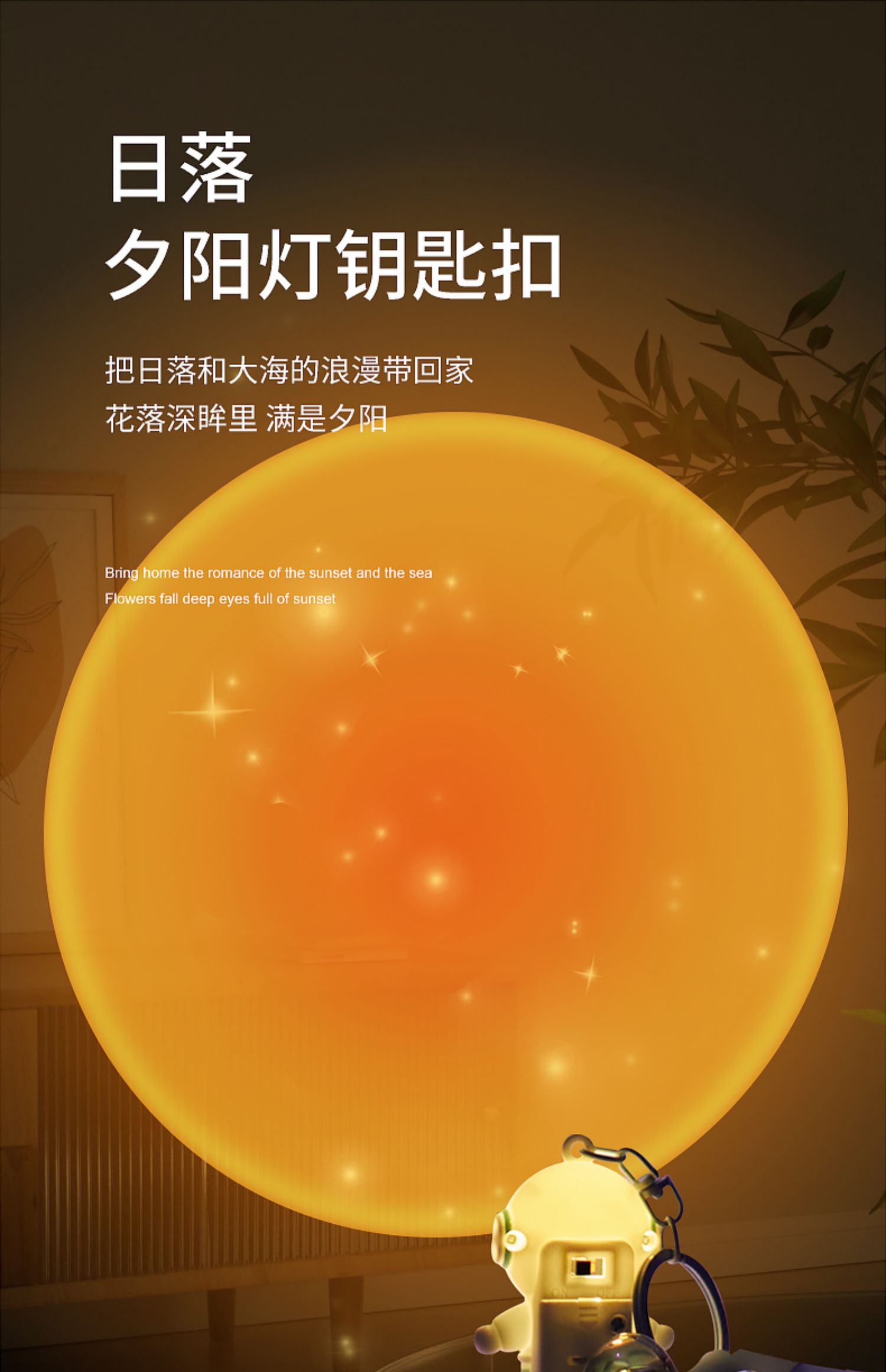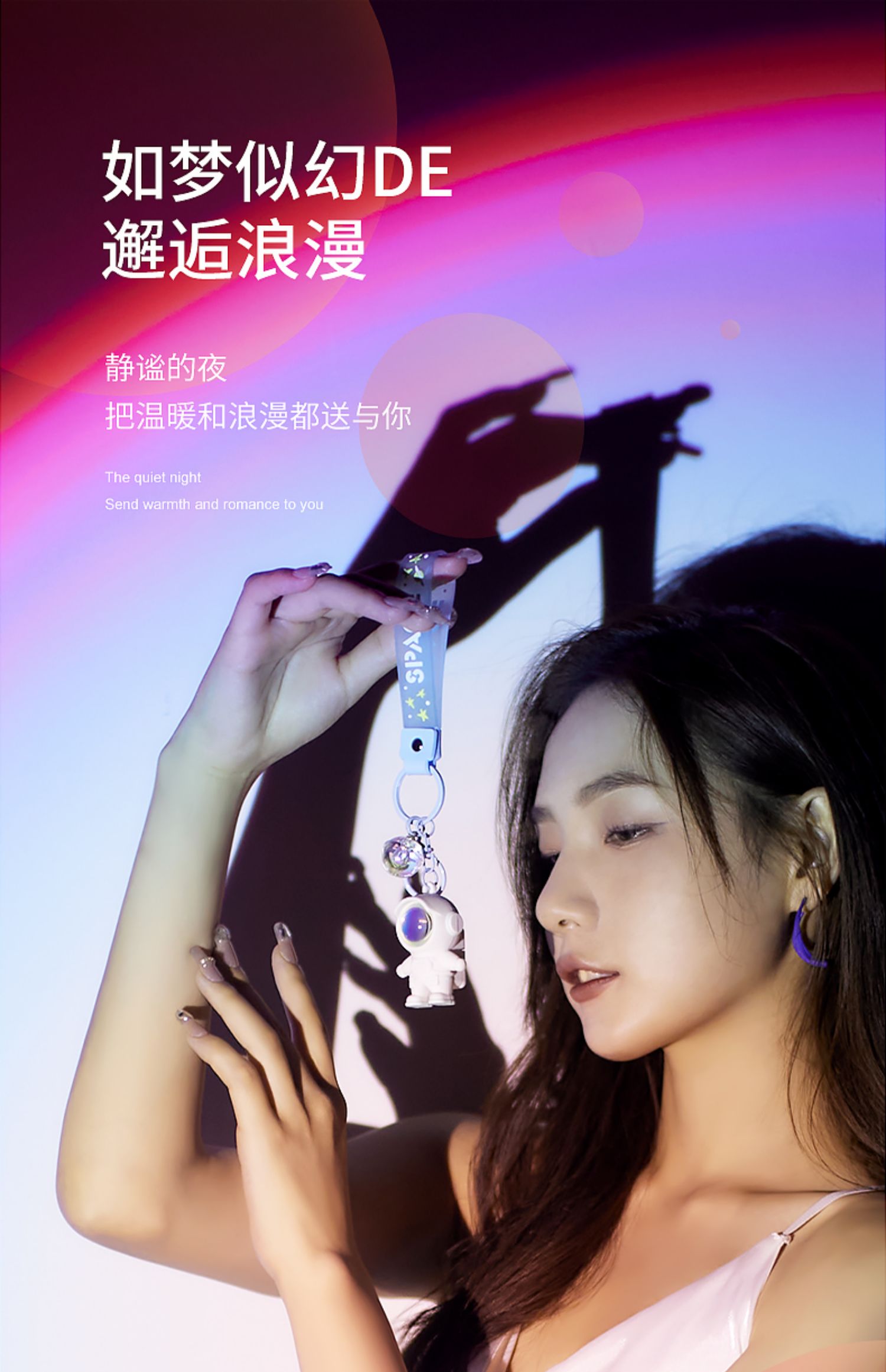 우주 비행사 일몰 조명 빛나는 키 체인 작은 펜던트 귀여운 만화 여성 가방 커플 창조적 인 Xiang Zhiyang
