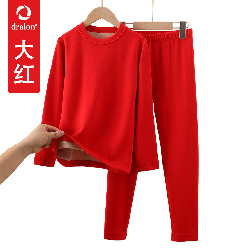 [특가] 어린이용 빨간색 보온복 세트, 생년월일 빨간색 속옷 세트, 가을 겨울 남아용 독일산 레이온 내의 세트스토어 가기