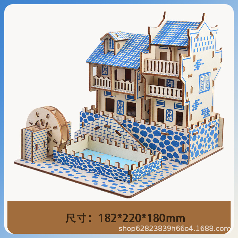 어린이의 어려운 손으로 조립한 나무 퍼즐 3차원 3D 모델 대형 건물 교육 장난감 도매 선물스토어 가기
